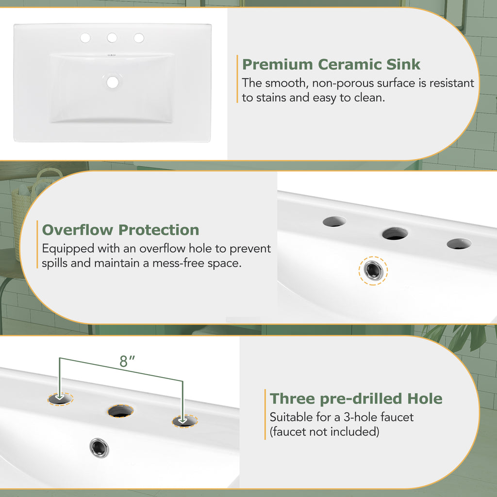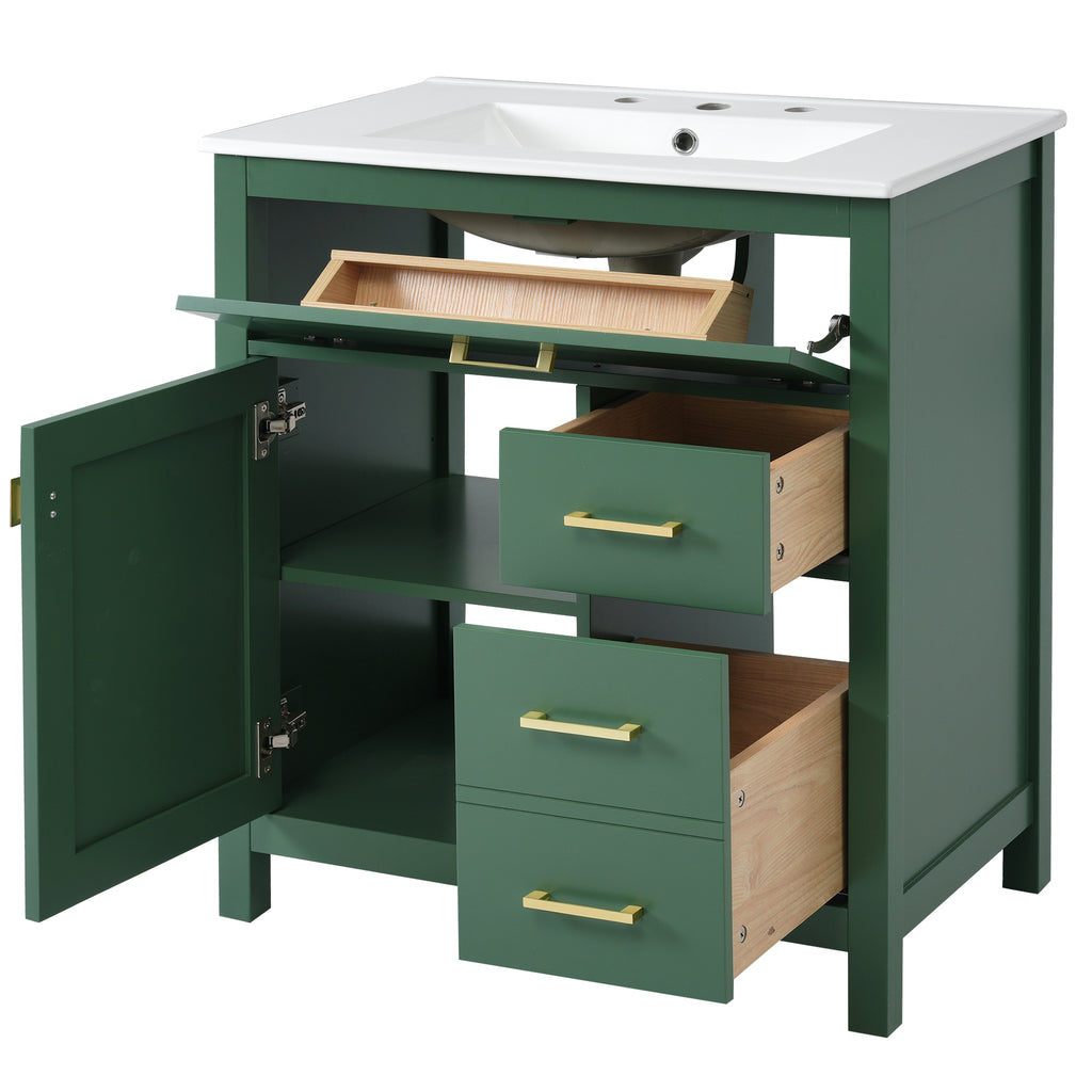 30-Inch Green Bathroom Vanity with Ceramic Sink and Ample Storage