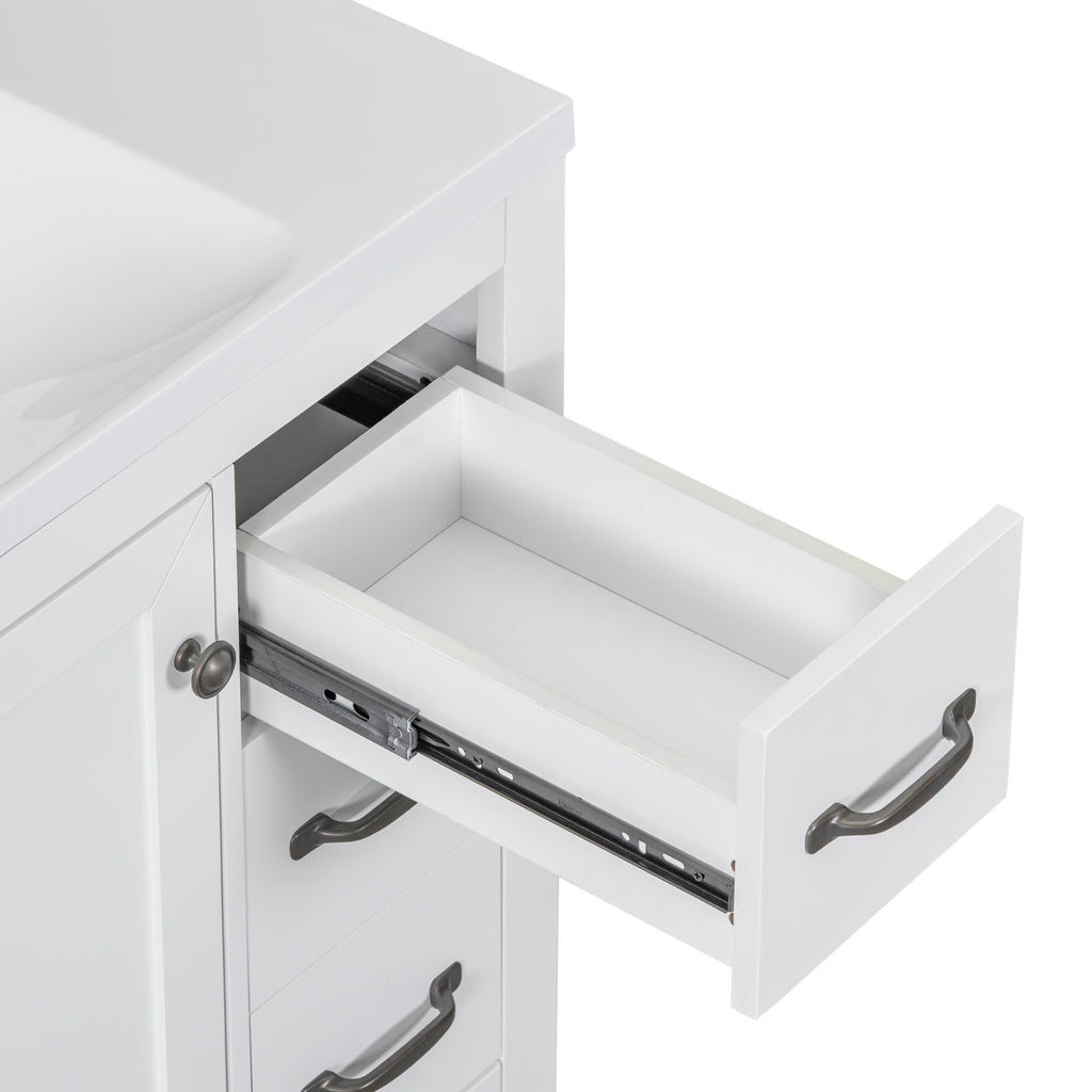 - Assembly Required: This bathroom vanity needs assembly. All the hardware(screws, metal door hinges and handles, drawer slides, anti-toppling device etc.) and instruction manual are provided. You can install it according to the instruction easily.