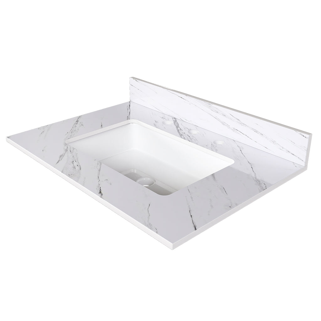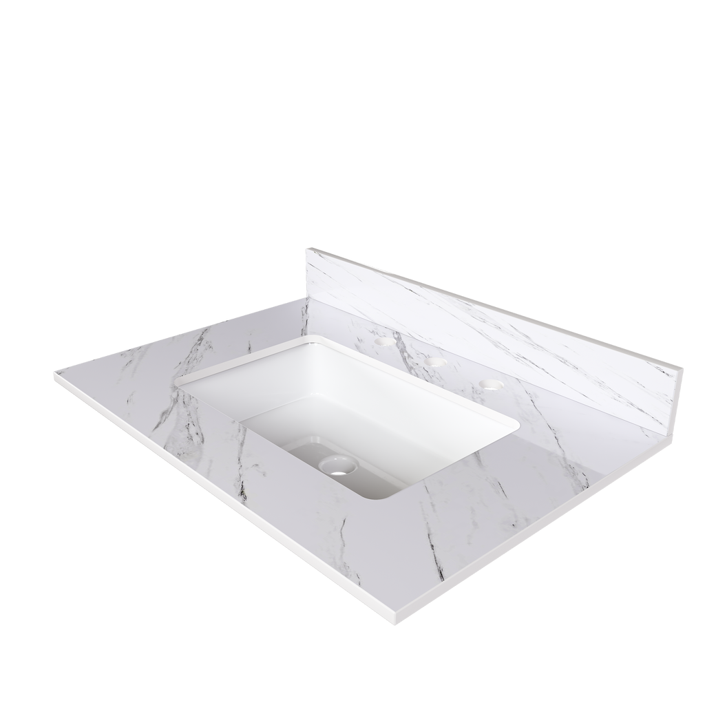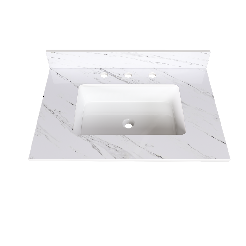 - Dimensions: vanity top measures 31 inches wide by 22 inches deep, 4-inch high backsplash ,to fit perfectly into most standard 30' W x 21' D size vanity cabinets.