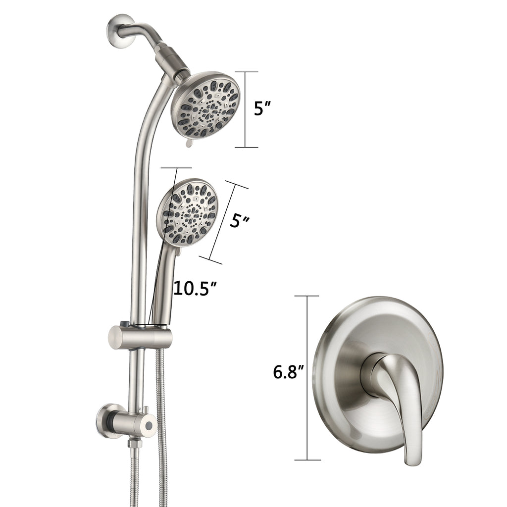 - 26' drillless stainless steel sliding rod assembly, equipped with 5-inch plastic ABS shower head, manual shower and low water level tee diverter, easy to operate.
