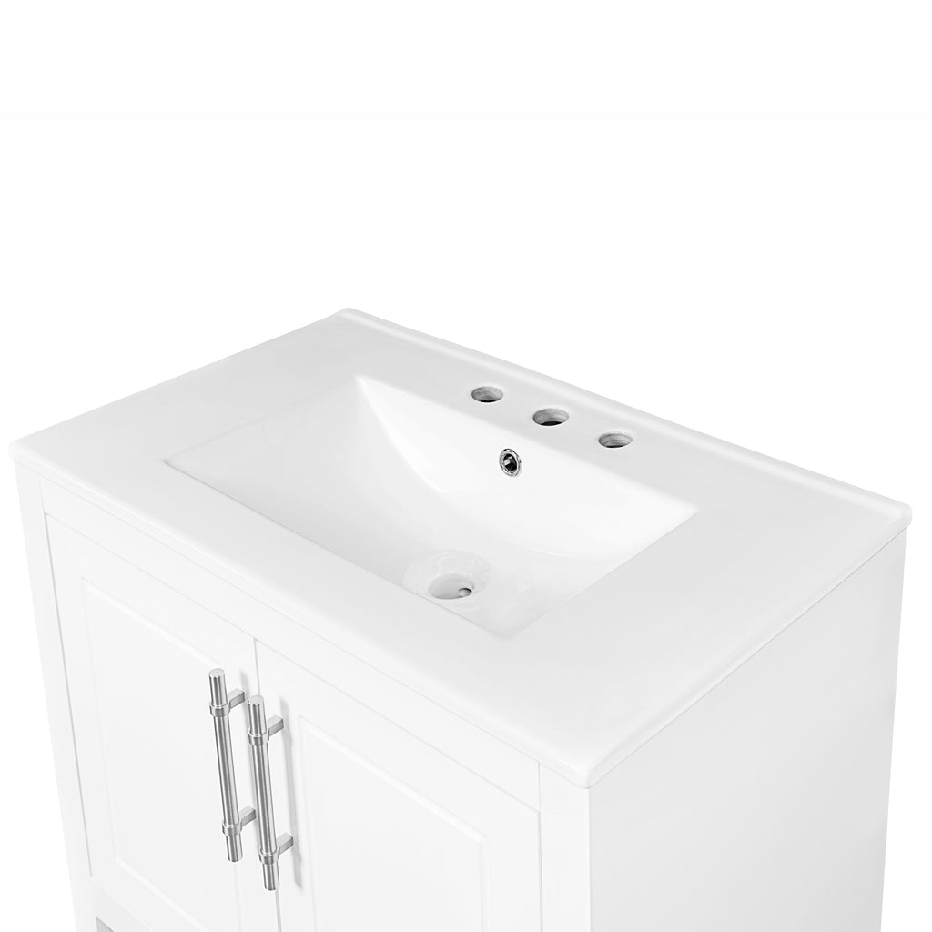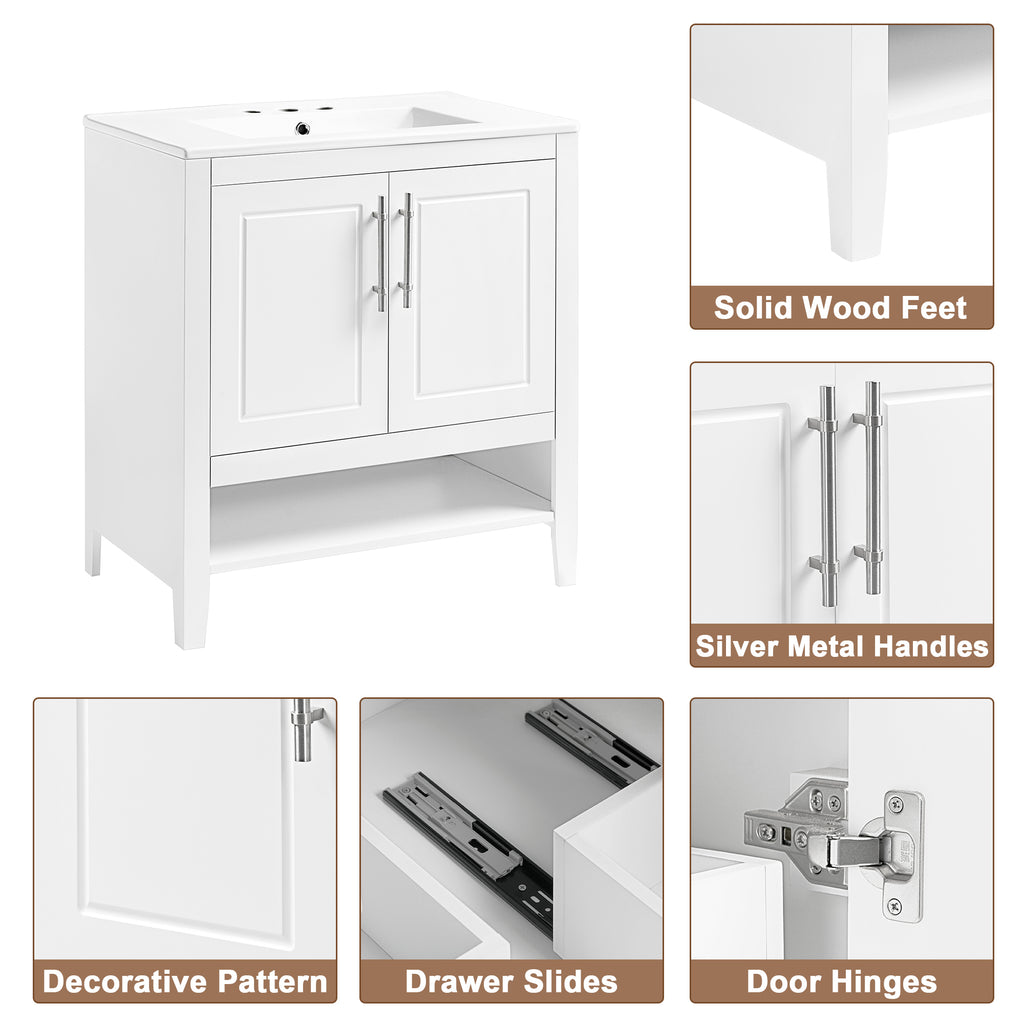 - Stylish Bathroom Vanity: This bathroom vanity is suitable for bathroom in any decoration style. Freestanding white vanity cabinet with silver handles complies with your bathroom facilities. The groove design on the door increases the artistry and aesthetics of home. If you're looking for a simple but stylish bathroom sink vanity, our product will be a great choice to upgrade your bathroom.