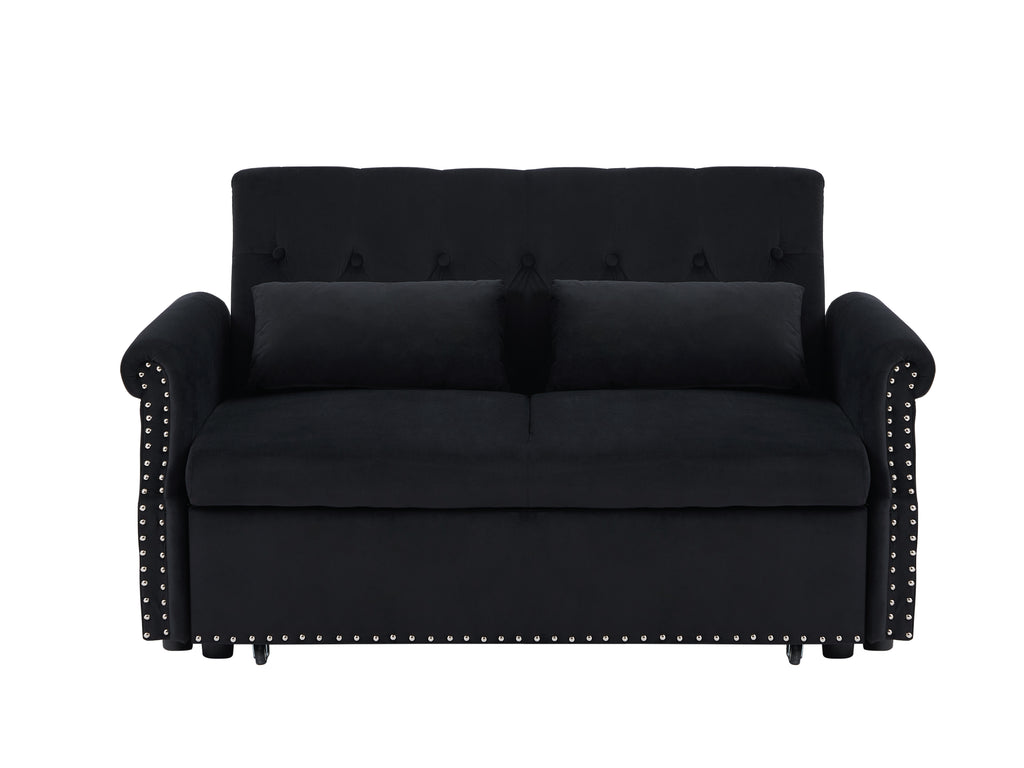 Artemax 55'' Modern Shiny Velvet Convertible Loveseat Sleeper Sofa Couch w/ 2 Lumbar Pillows
