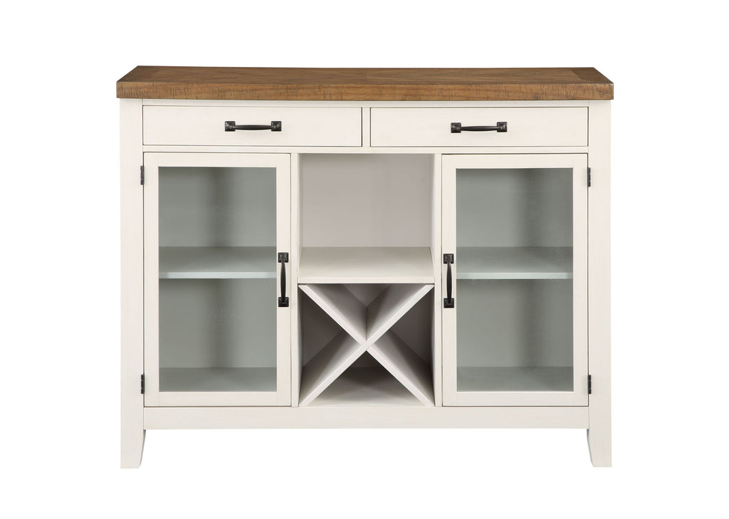 - Chevron patterned veneer top with light saw mark distressing for a vintage heirloom look