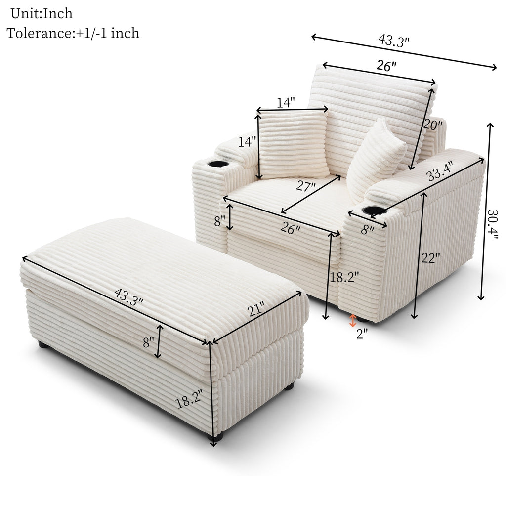 - 【Movable Ottoman】:Our corduroy couch chair comes with a removable ottoman that can be placed according to your personal needs,the corduroy sofa chair will be a great addition to your home!