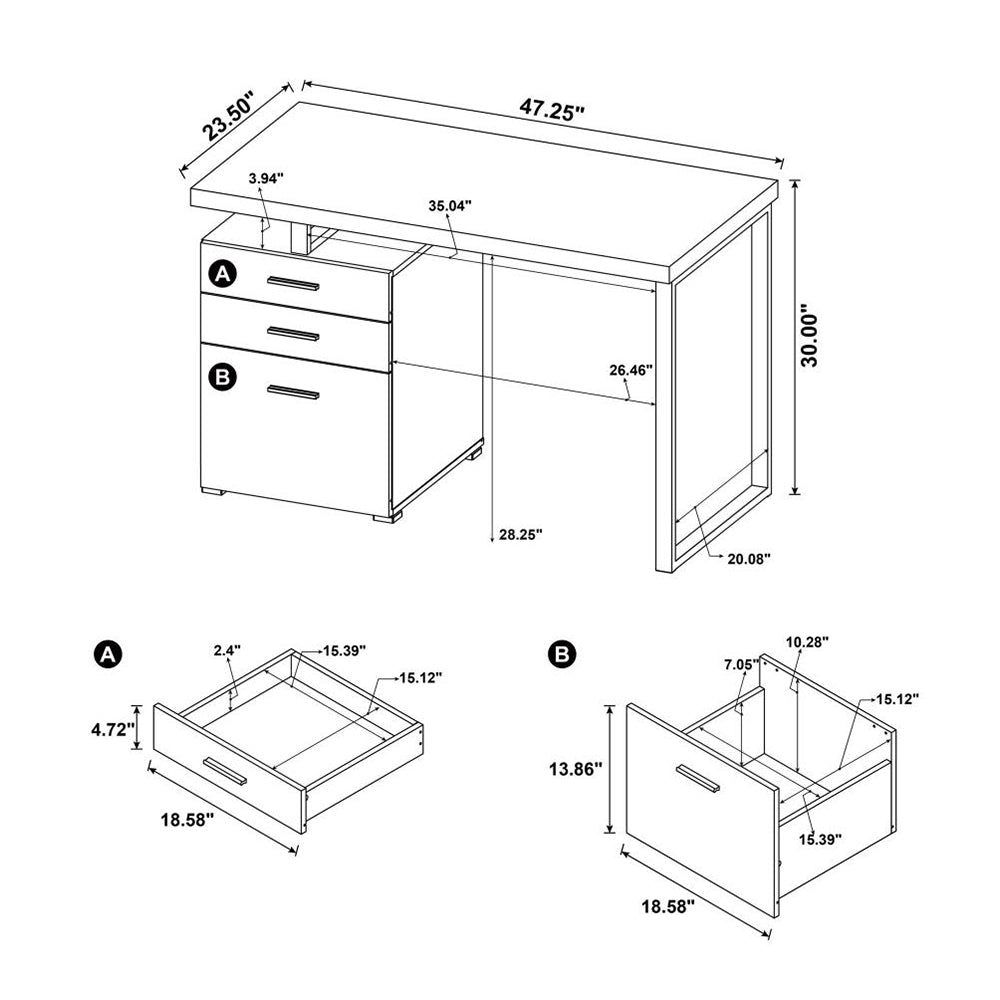 - Two (2) storage drawers and one (1) file cabinet round out functional storage in the unit