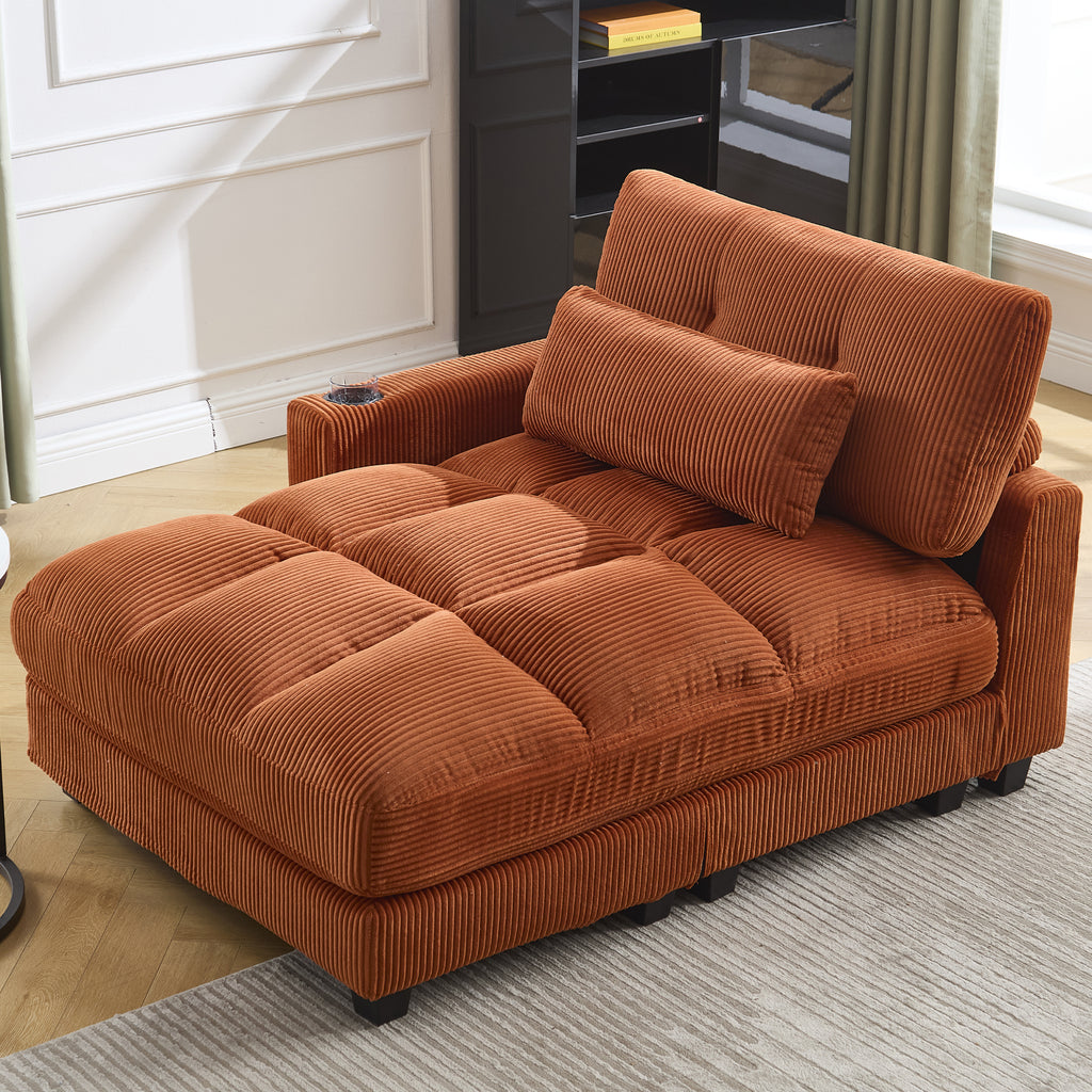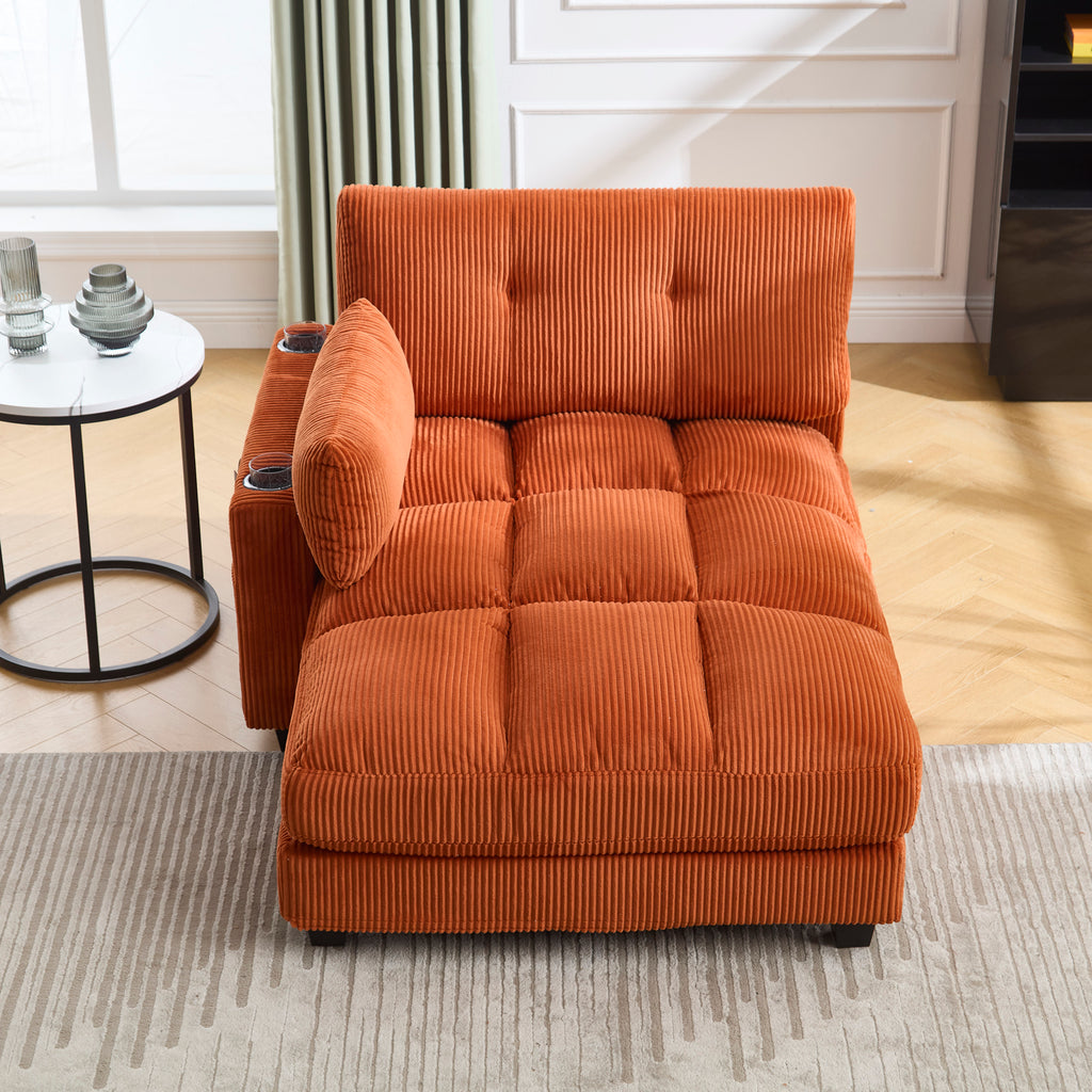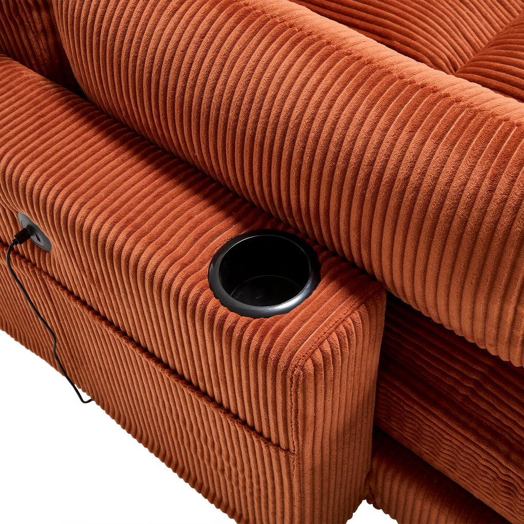 This sofa is designed with great ingenuity. It is equipped with side storage pockets, which can be used to neatly place various small items, meeting daily usage needs. At the same time, it is equipped with two cup holders that are stable and durable, ensuring the safe placement of all kinds of beverages. The backrest of the sofa is adjustable, allowing for flexible adjustment to a comfortable angle according to the user's needs, thus bringing users a pleasant and comfortable experience.