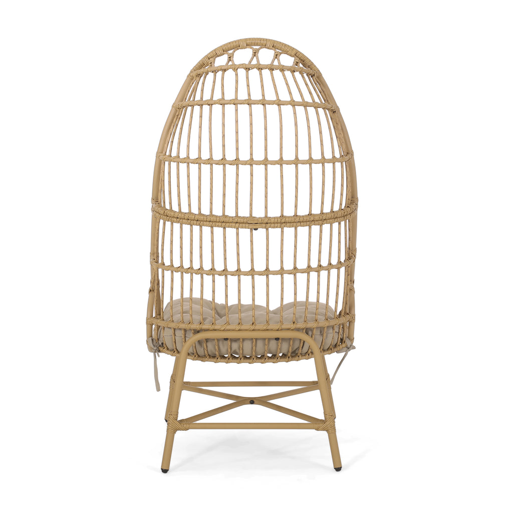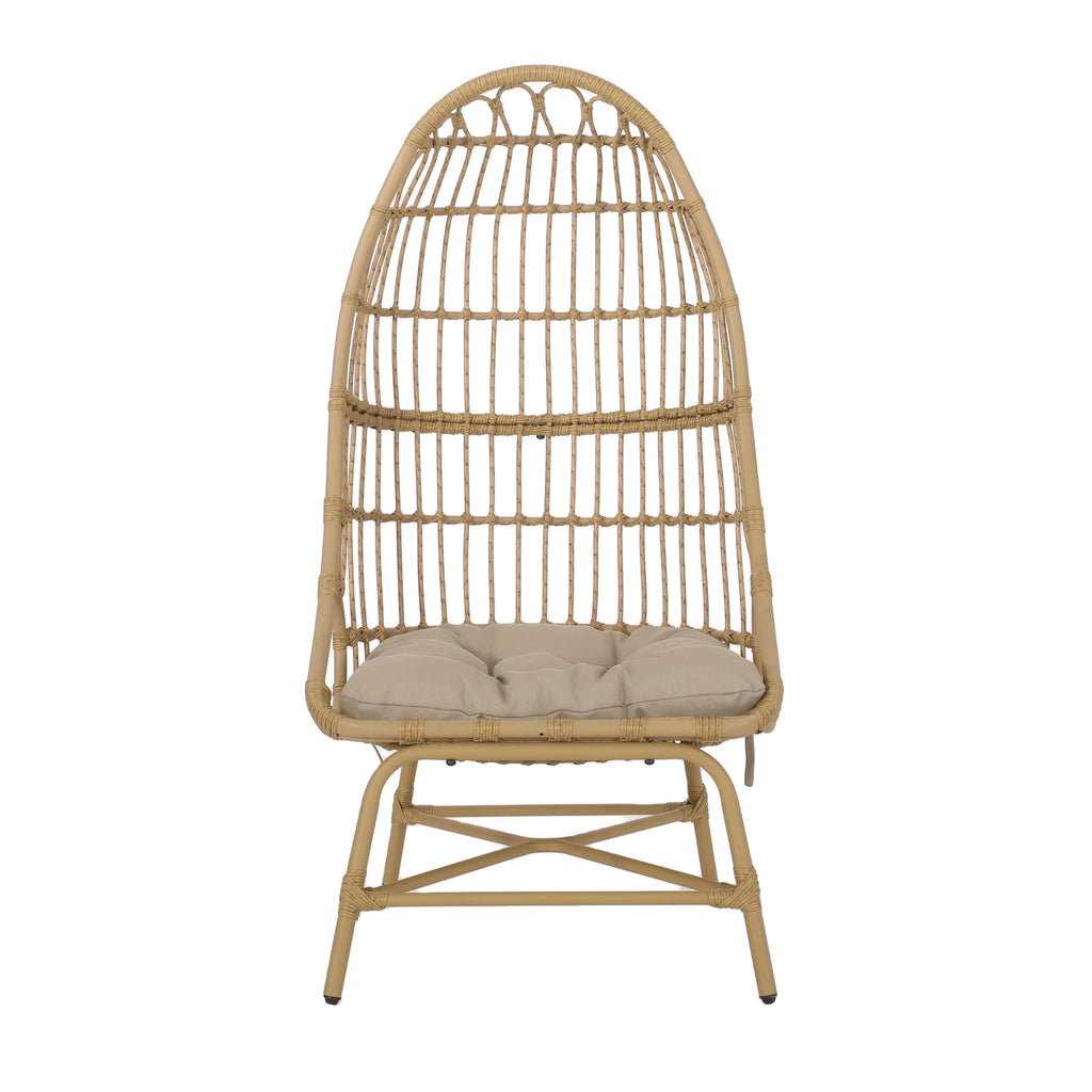 - This chair features an oval shape and a grid-like pattern for a basket-inspired look. Gorgeous wicker is wrapped around a durable metal frame