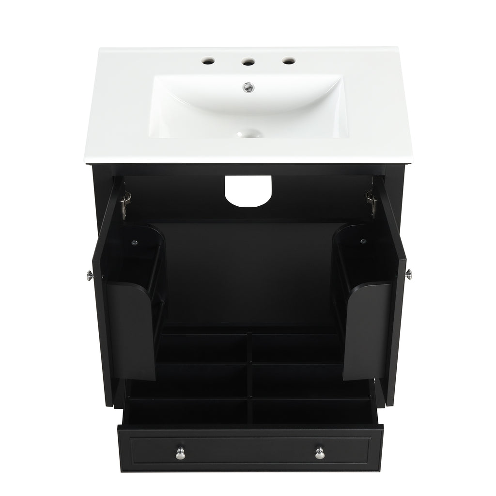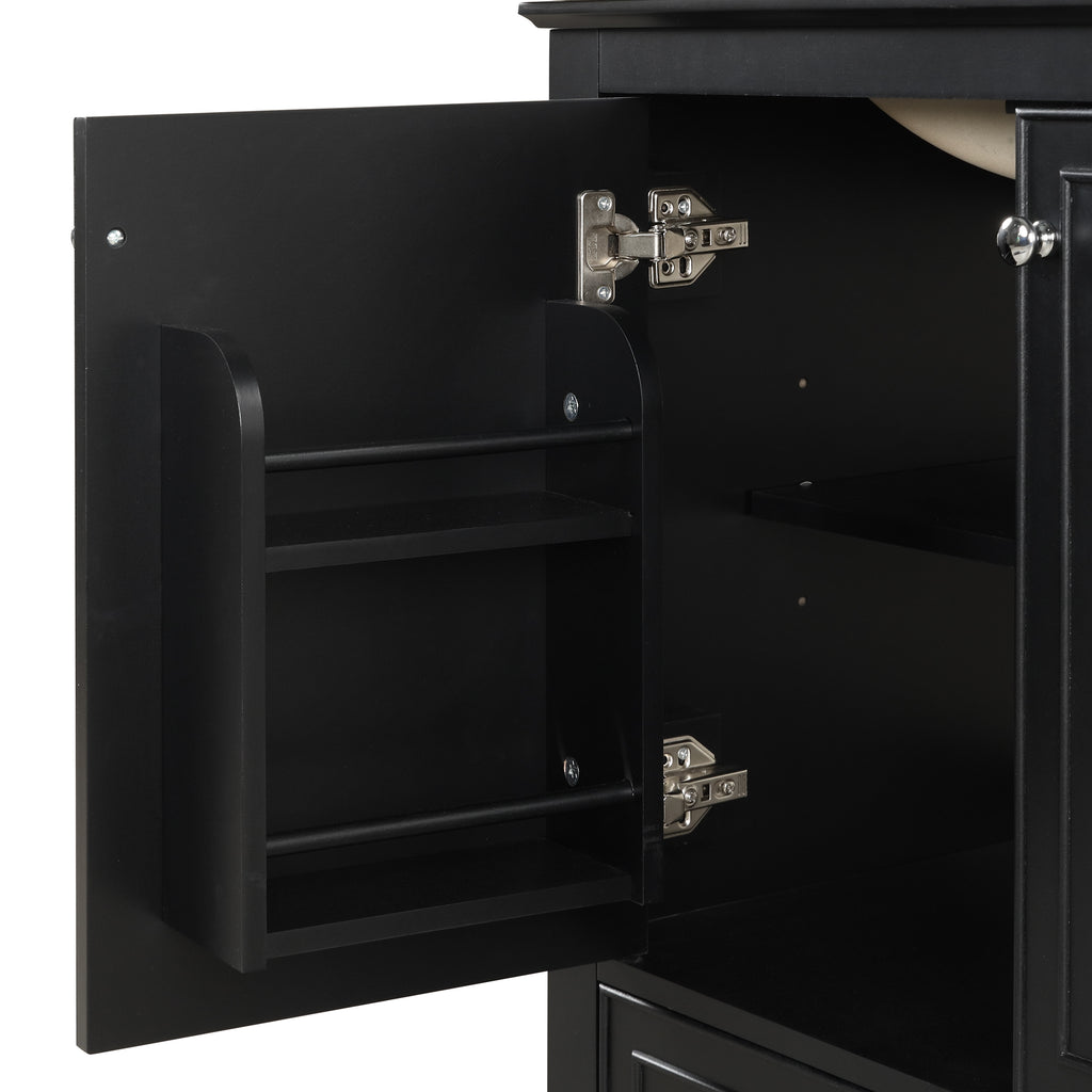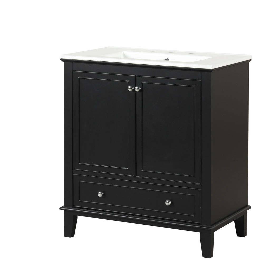 - Assembly Required: This bathroom vanity needs assembly. All the hardware(screws, metal door hinges and handles, drawer slides, anti-toppling device etc.) and instruction manual are provided. You can install it according to the instruction easily.