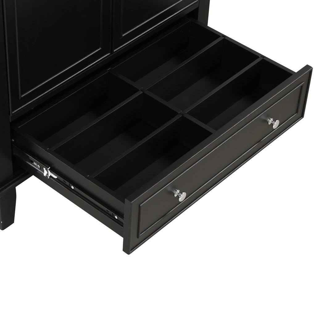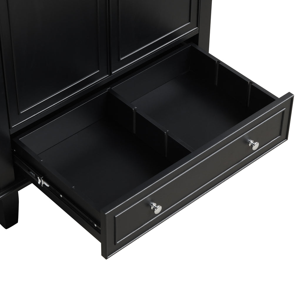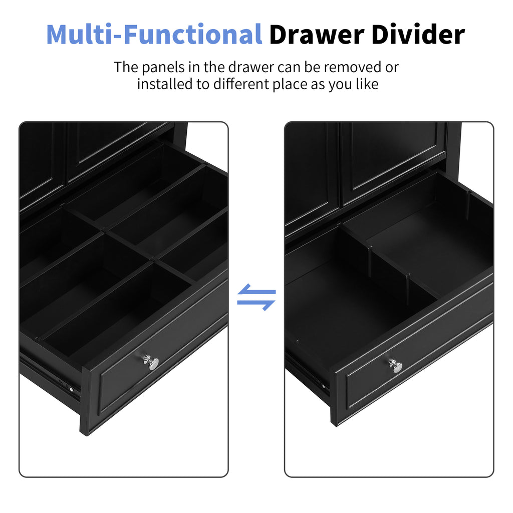 - Multi-functional Cabinet and Drawer: The door of this vanity cabinet is designed as functional storage: a rack with two tiers on the each door for you to store makeup and other stuff. Besides, the lower big drawer can be divided into different parts by the section panel. The panel is removable and you can remove it according to your needs.