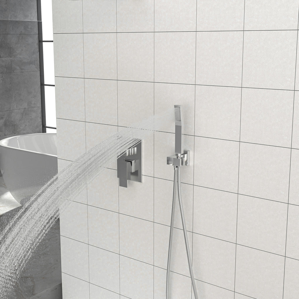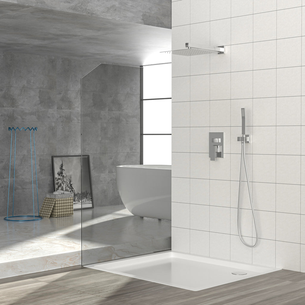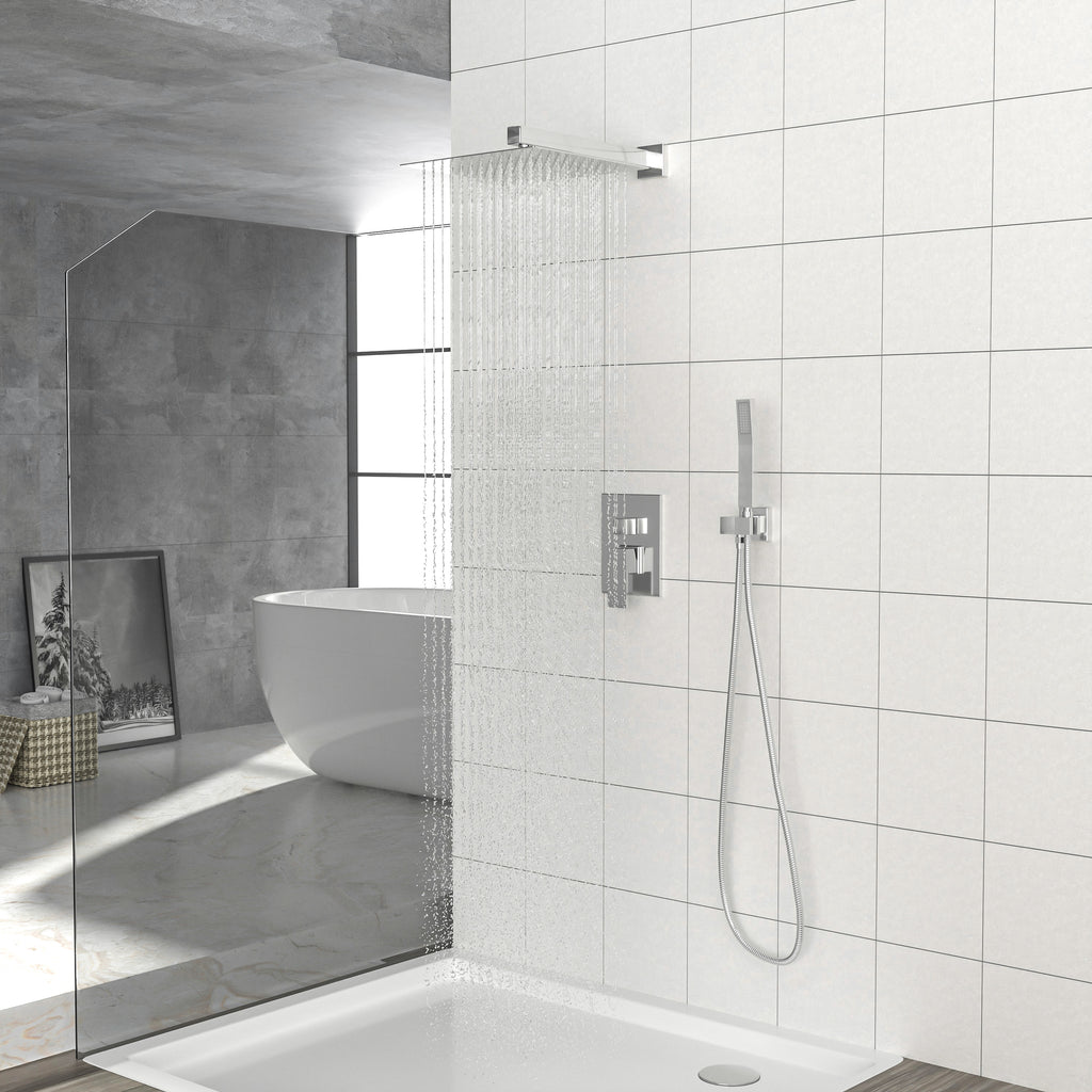 - {Included Components}12 inch Square rain shower head,Shower Arm, handheld shower head, 59' shower hose,shower holder, water control valve,Parts and installation instructions.