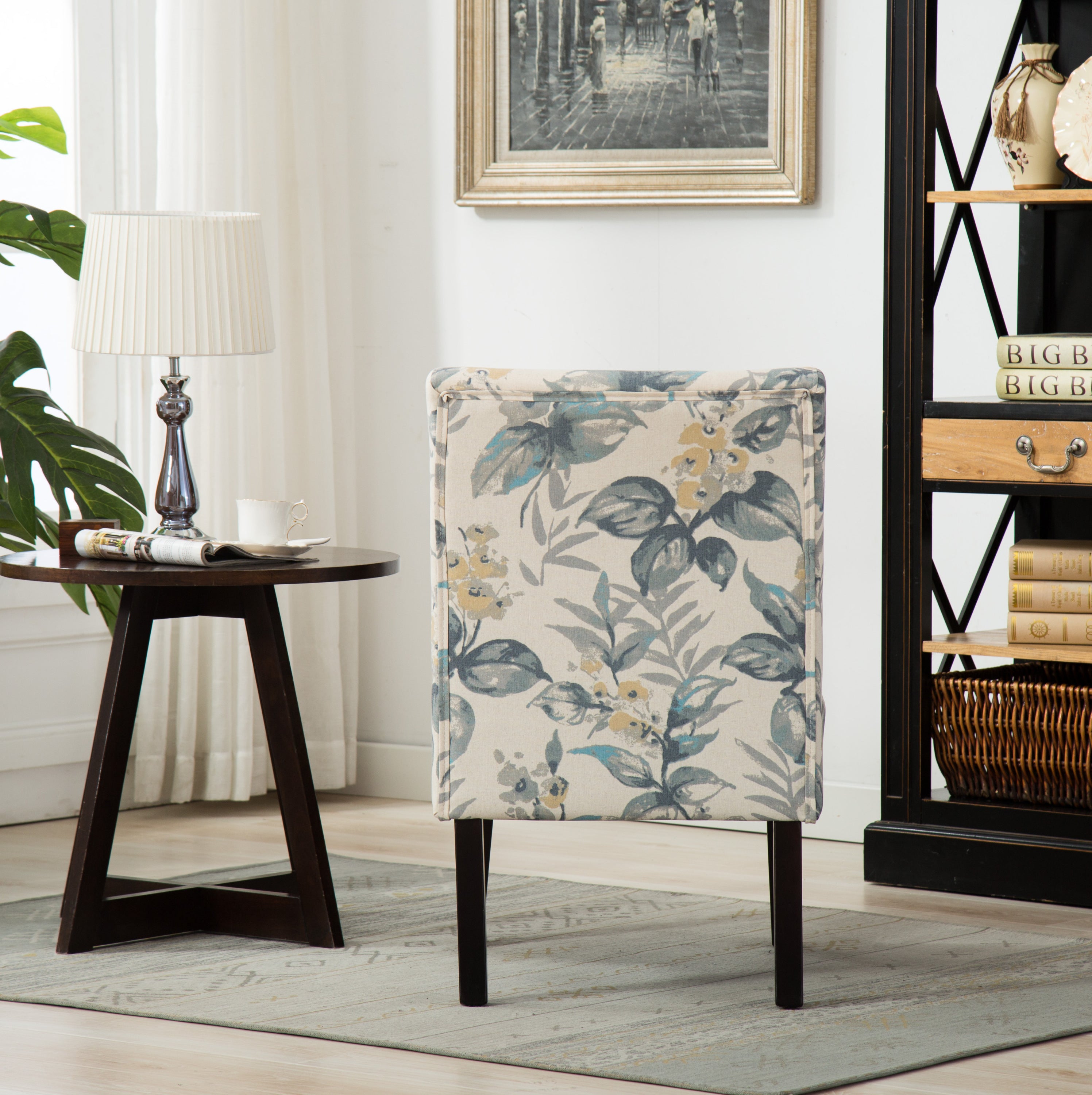 Capa Print Fabric Armless Contemporary Accent Chair, Blue Leaves