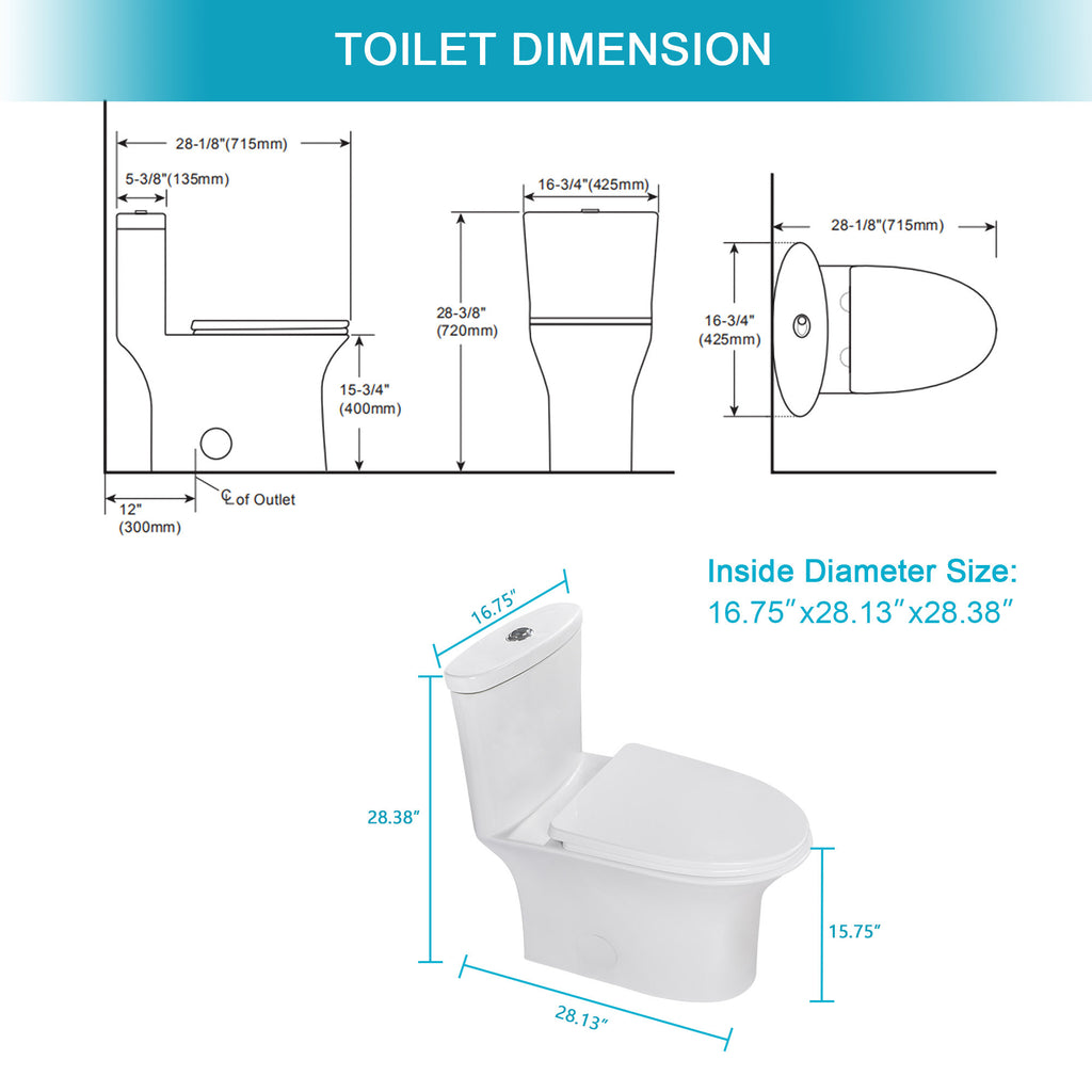 - The Package Includes toilet, pre-installed soft closing toilet seat, high-quality wax ring, floor bolts, and also installation instruction.