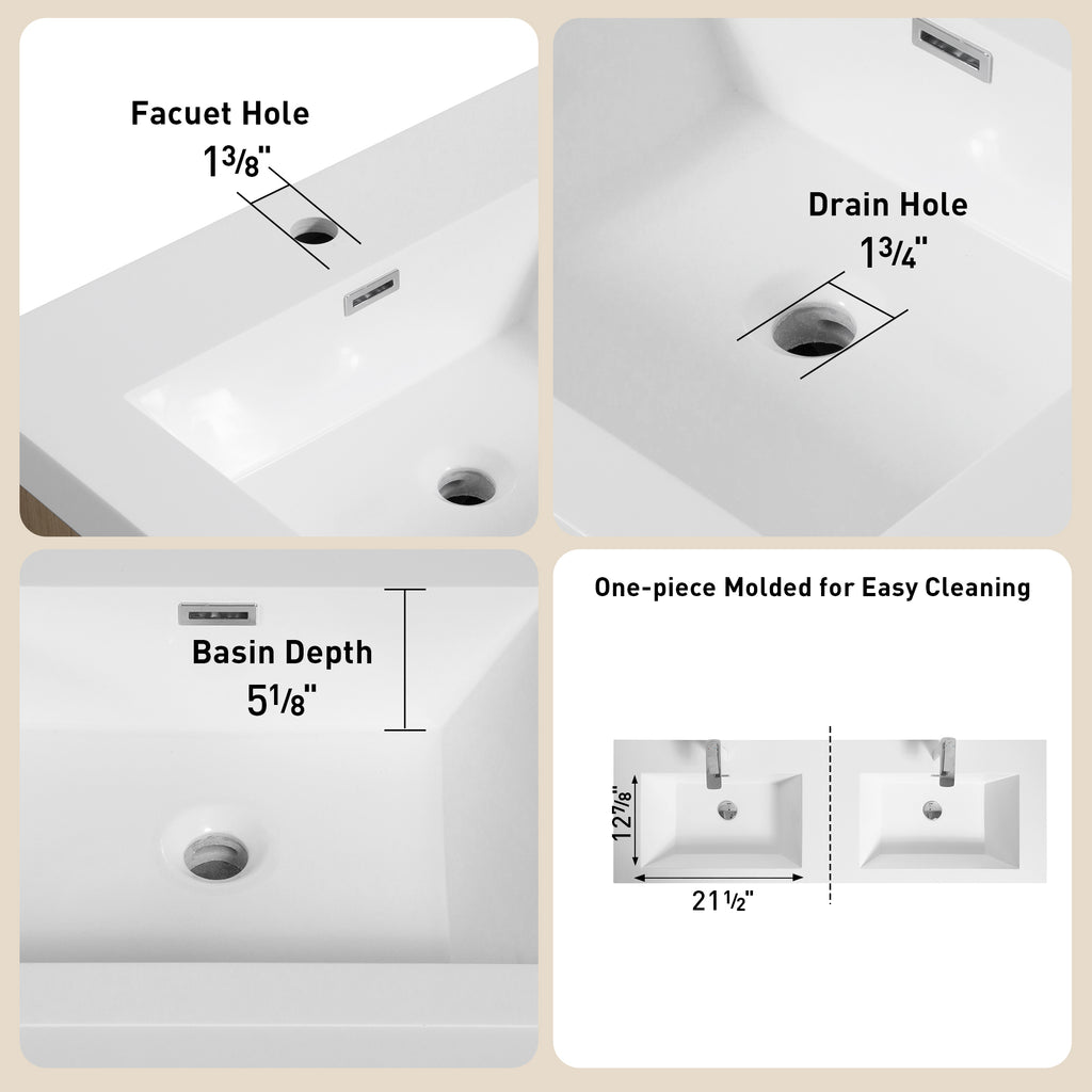 - Premium Stone Resin Countertop: It features a glossy white, one-piece sink made of high-quality materials that are easy to clean, resist yellowing, and have low water absorption.