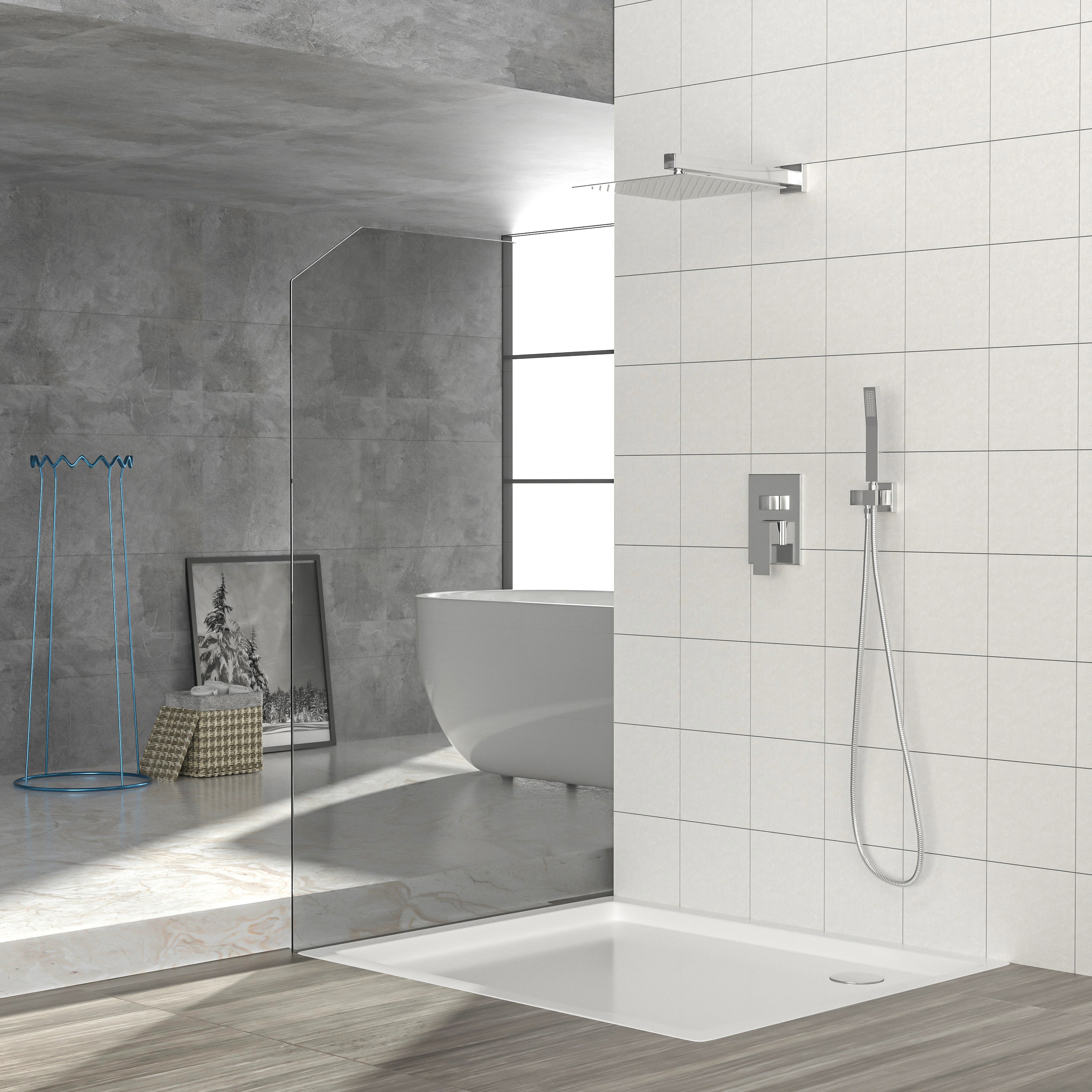 - {Included Components}10 inch Square rain shower head,Shower Arm, handheld shower head, 59' shower hose,shower holder, water control valve,Parts and installation instructions.