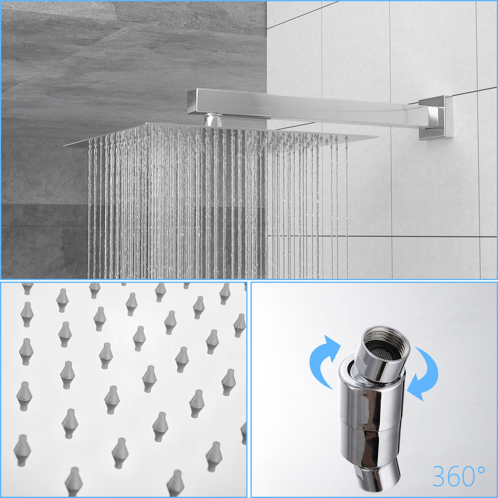 - {Rainfall Shower Head}Our ultra-thin overhead rainfall shower head offers extensive coverage, providing a soothing downpour shower experience with 360° adjustability.