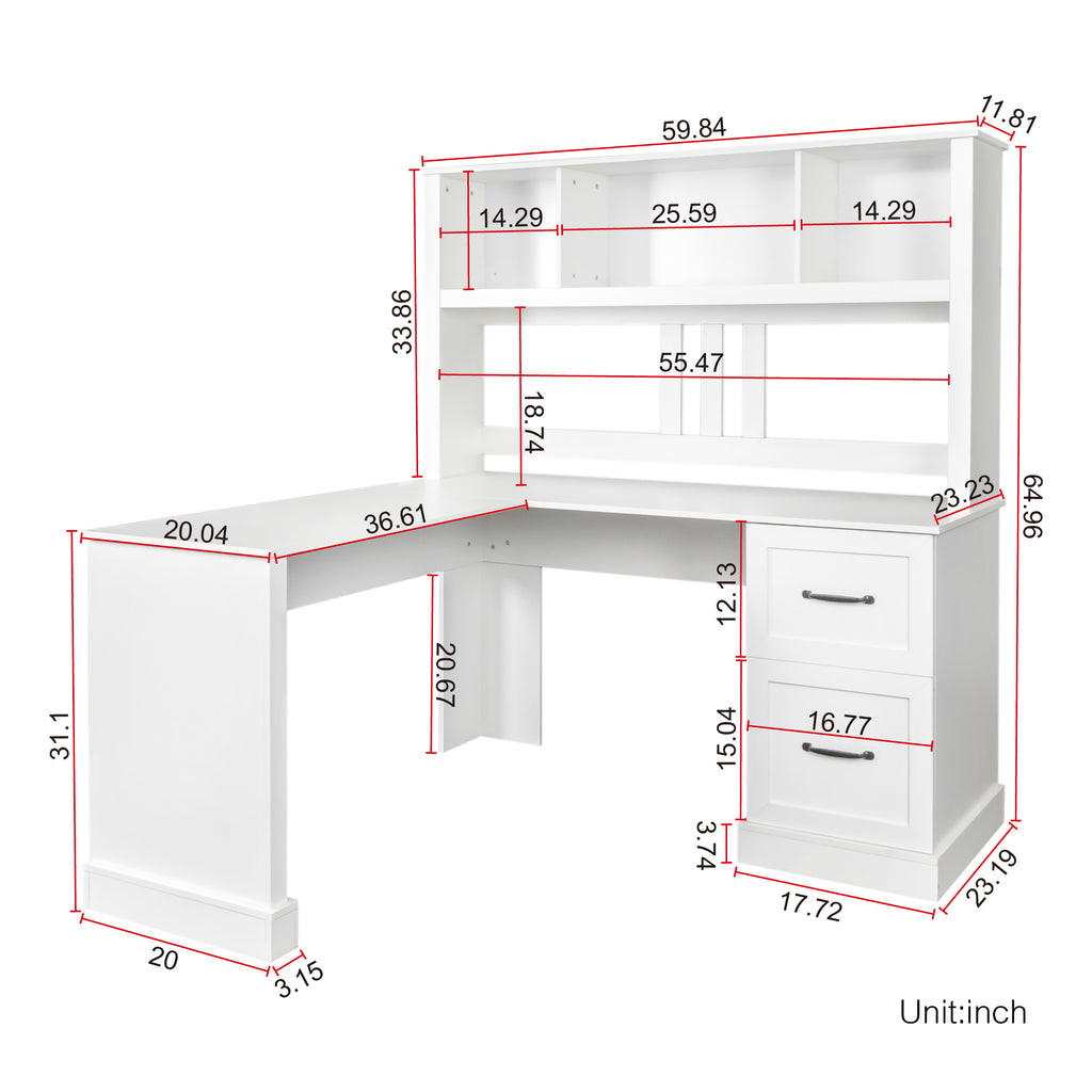 - Product size:59.84*59.84*64.96 Ample Storage Space Coming with 2-tier open shelf and 2 large drawer, with powerful storage space.