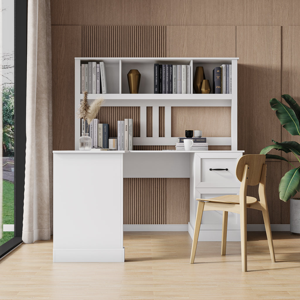 Home Office Computer Desk with Hutch, Antiqued White finish