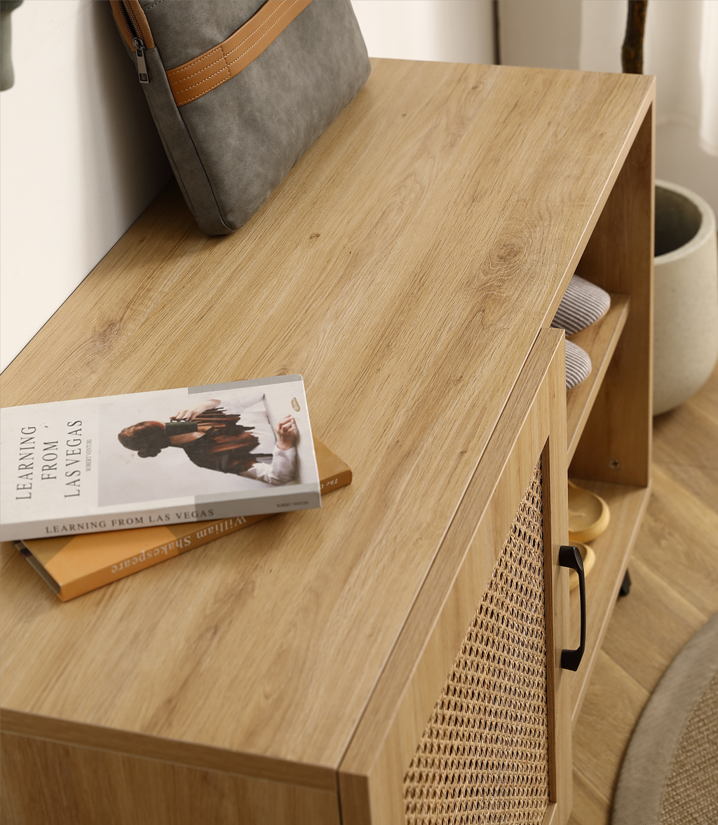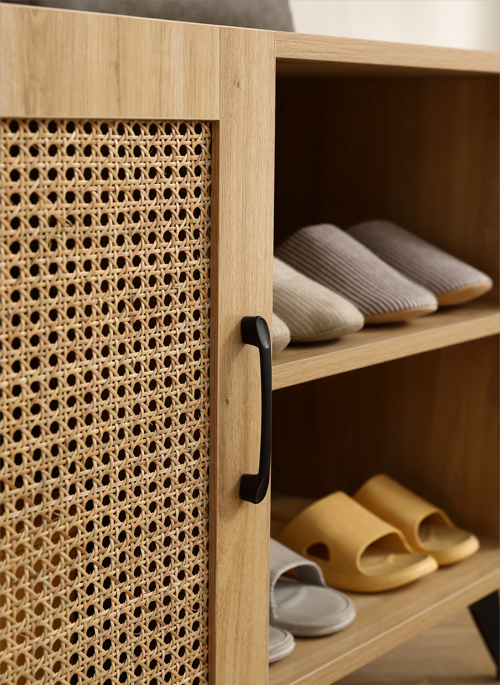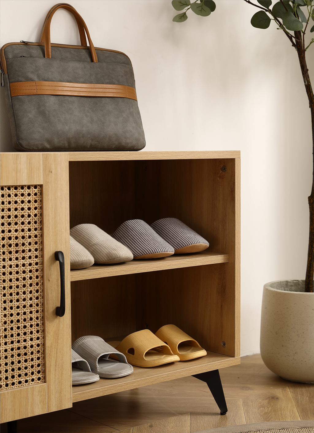 - The rattan mesh door allows for air circulation, preventing unpleasant odors and keeping your shoes fresh and clean.