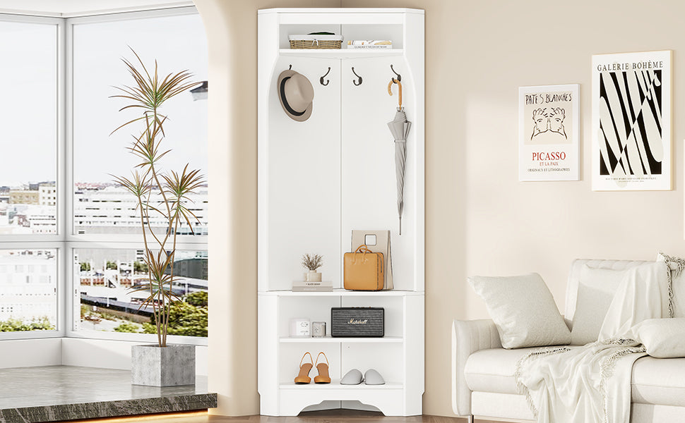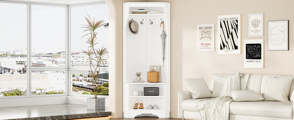 Measuring 29.5''(W) x 18.2''(D) x 71.6''(H), this corner cabinet with storage maximizes the use of corner space in your home, conserving area and enhancing storage capabilities. This design is ideally suited for small apartments or units.