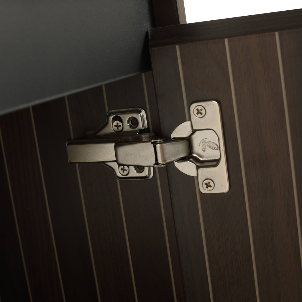 Vanity equipped with premium stainless steel soft-close hinges, the cabinet doors close silently with a gentle push, eliminating abrupt noises typically associated with traditional cabinet doors.