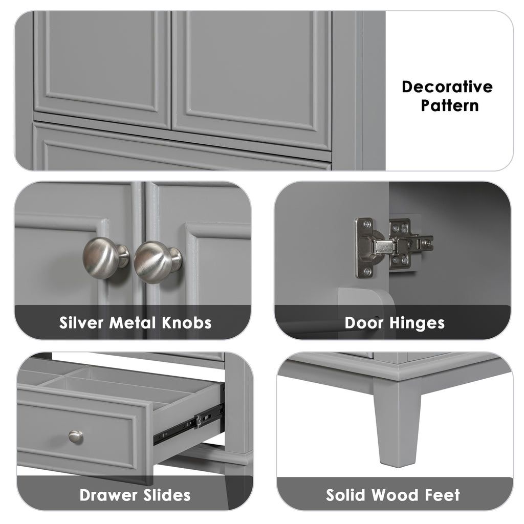 - Assembly Required: This bathroom vanity needs assembly. All the hardware(screws, metal door hinges and handles, drawer slides, anti-toppling device etc.) and instruction manual are provided. You can install it according to the instruction easily.