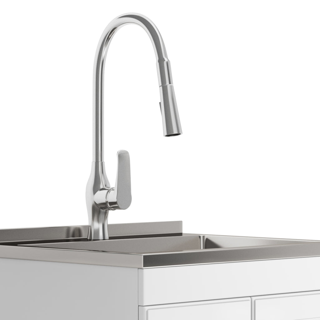 - High arch single lever pull out faucet with on and off spray,Plumbing parts included