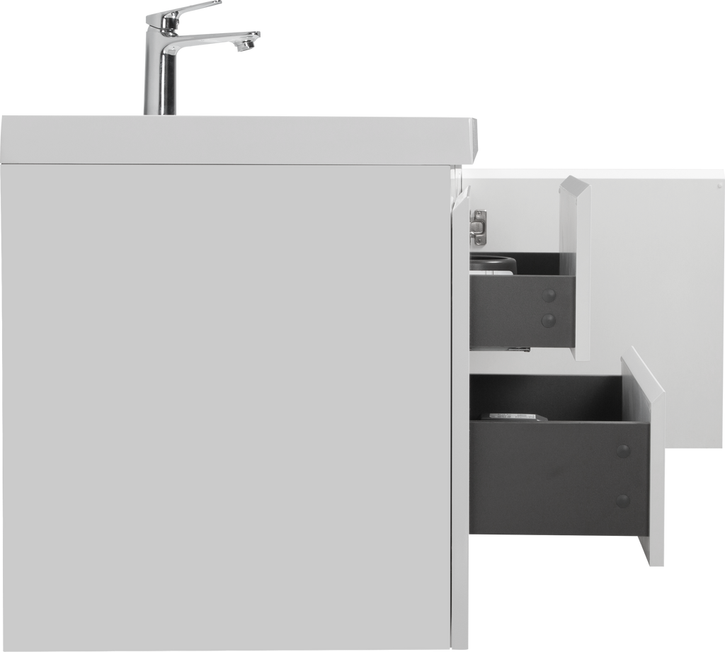 - Clean and Functional: Enhance your bathroom with this space-saving, wall-mounted vanity to neatly organize cosmetics and other essentials. Its modern, minimalist design enhances the aesthetics of your space while maximizing functionality.