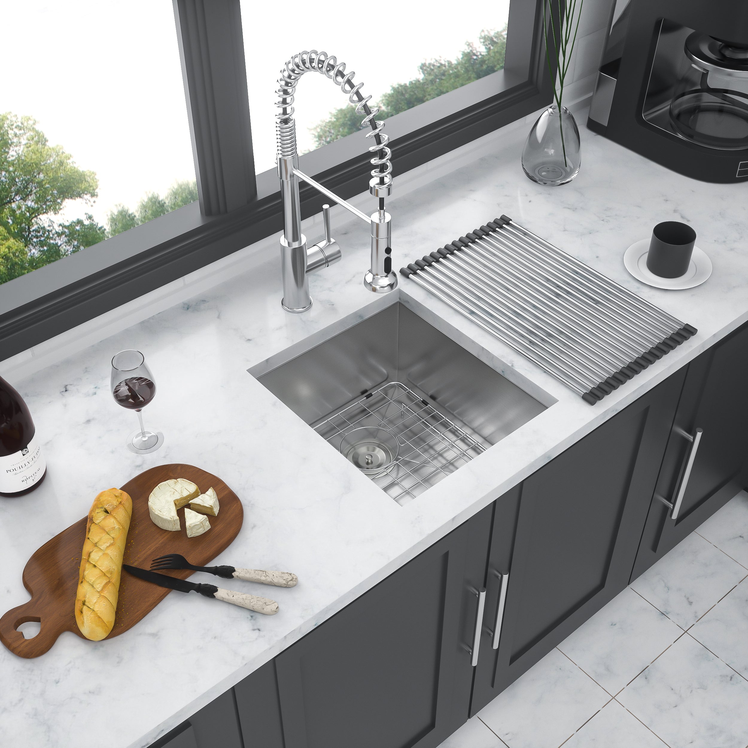 - [Included in the Package]Comes with this kitchen sink: 1 x 304 stainless steel dish grid, 1 x drain assembly, 1 x drying rack,1 x installation clips, 1 x cutout template and installation Guide.