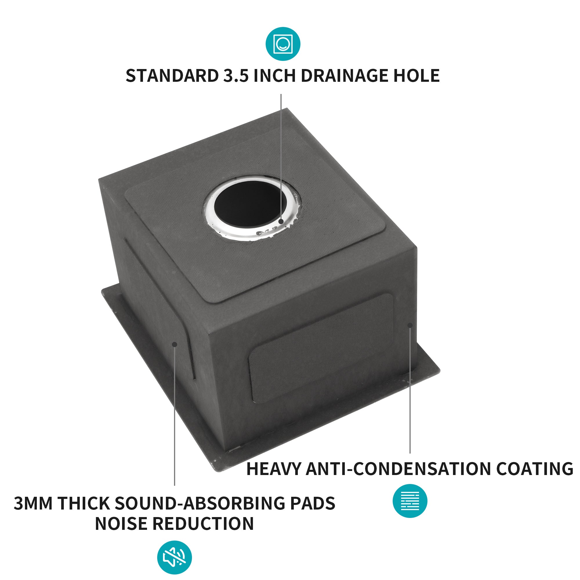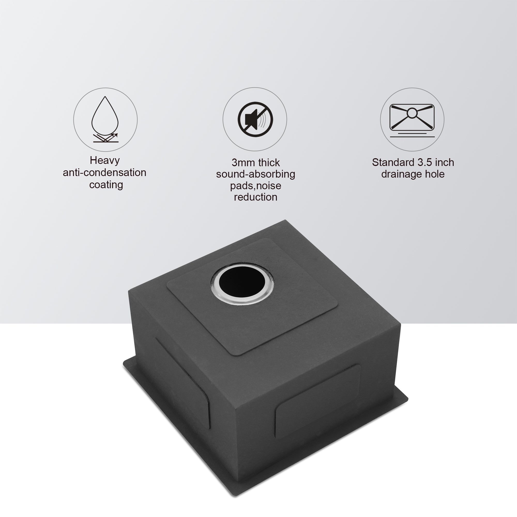 - [Coating and Silencer Pad]There is a thick coating on the outside of the sink to prevent condensation caused by weather changes. In addition, the 3mm thick rubber silencer pad can greatly reduce the noise from the faucet and give you a quieter cooking environment.