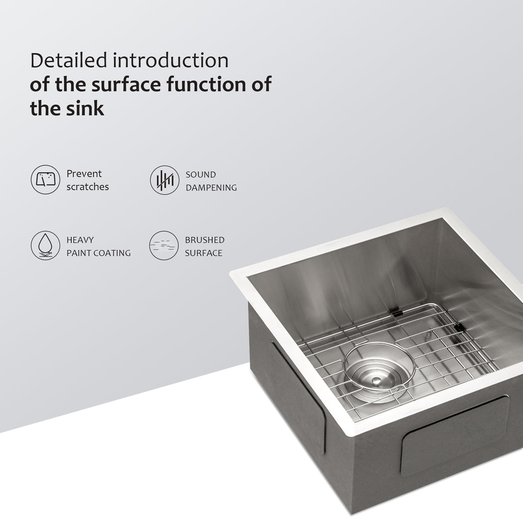 - [Quality Materials]The sink is handcrafted from the top quality food grade 304 stainless steel available on the market, creating a hard, non-porous, smooth surface that is easy to clean and doesn't build up bacteria, making the sink more durable.