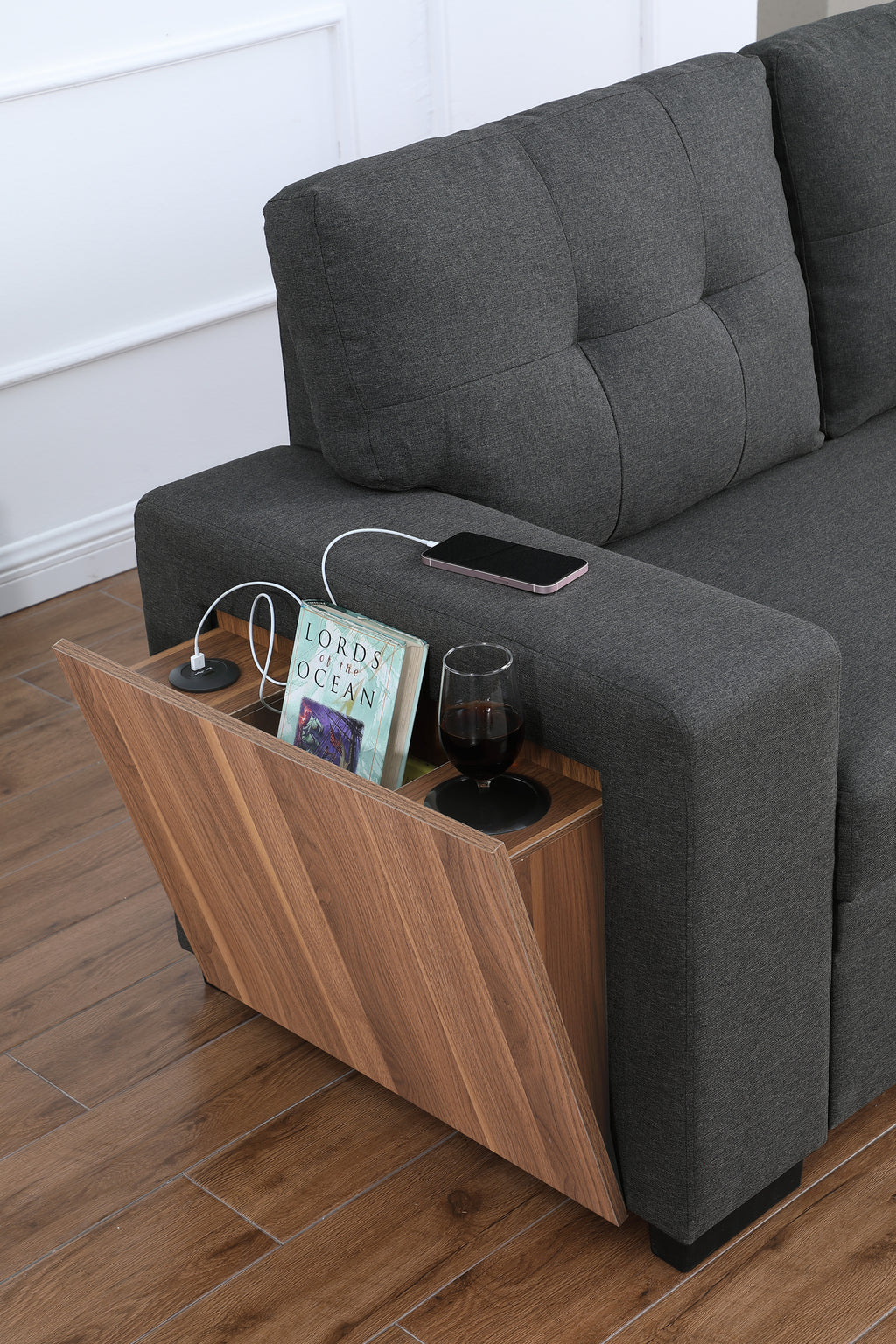 - This choice adds a touch of modernity and sophistication, enhancing the overall visual appeal of the piece. In summary, this pull-out sectional sofa with its linen blend material, chaise with storage, pull-out loveseat with a side open cup holder, removable back cushions, and black leg color is a versatile and stylish addition to any living space, providing comfort, convenience