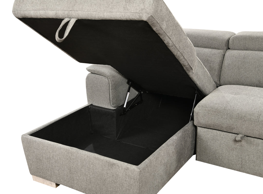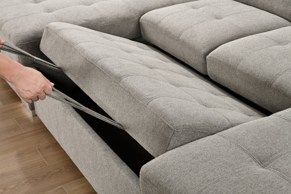 Sleeper Sofa: The hidden bed under the sofa can be changed into a sleeping bed that can be easily pulled out and pushed in to allow for extra guests and space saving accommodation The hidden storage space in the chaise is perfect for storing seasonal blankets, extra pillows.