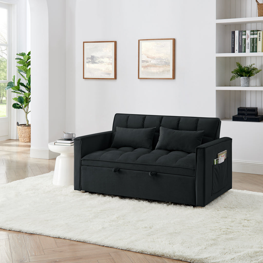 - High Quality : Durably crafted with soft velvet fabric and plastic legs, this convertible sofa bed fuses comfort and style that will last in your living space for years to come .This sofa bed also comes with 2 soft pillows. Dimensions: Sofa Chair: 31.1 in (H) x 36.6 in (D) x 55.5 in,Packing size:49.21 in x 37.99 in x 14.96 in H