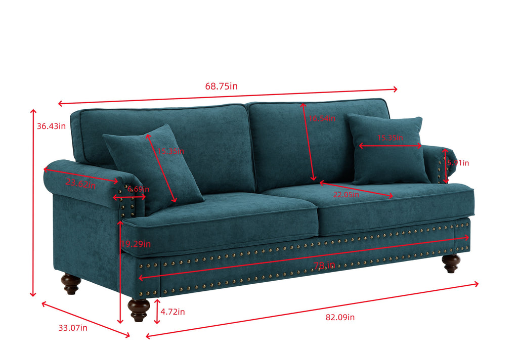 Modern Sofa for Living Room, 82' Green Chenille  Sofa Couch, Sectional Love Seat Sofa Couch with Brown Legs, Upholstered Sofa for Apartment Bedroom Home Office