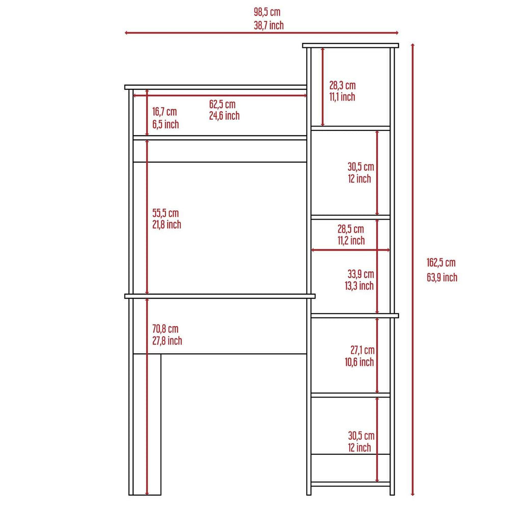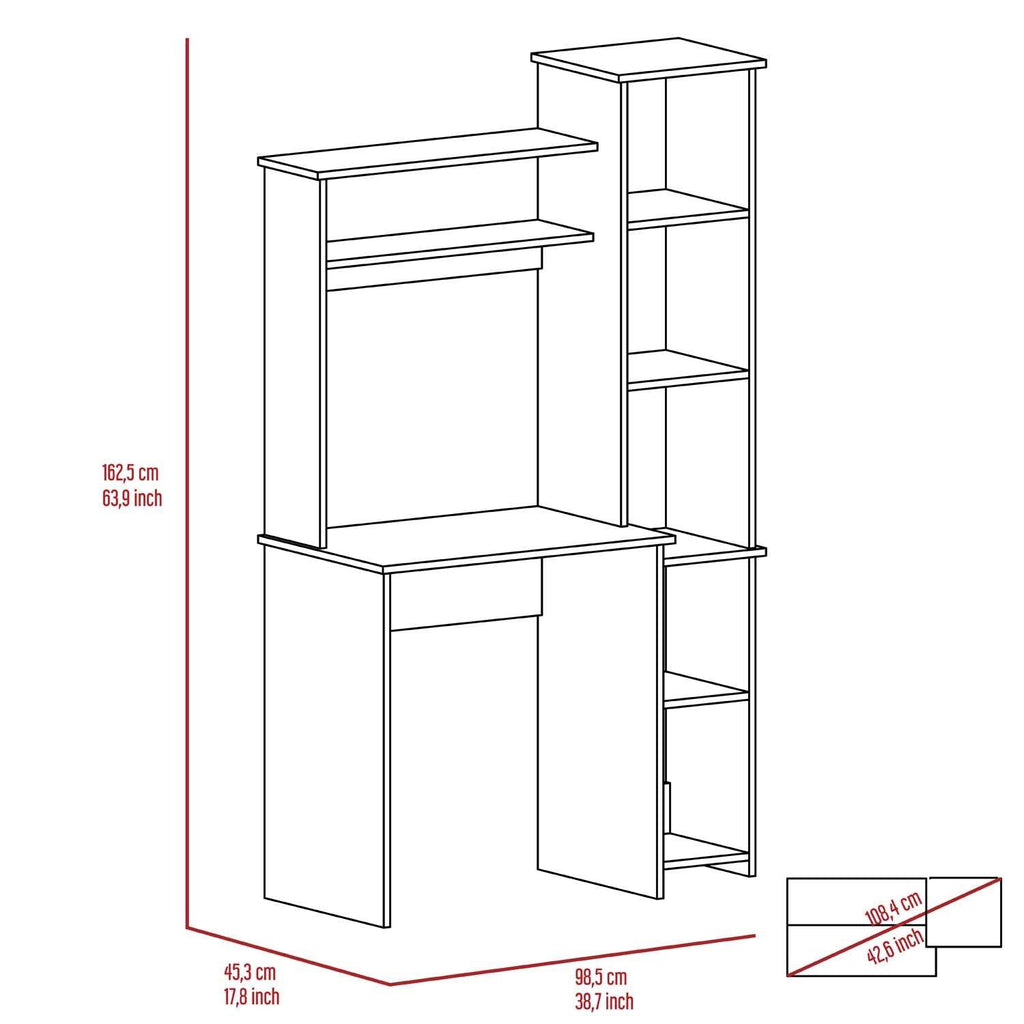 - Three Semi-Open Shelves on the left: 1) Top Shelf: 11.1'H x 11.2'W 2) Middle Shelf: 12'H x 11.2'W 3) Lower Shelf: 13.3'H x 11.2'W