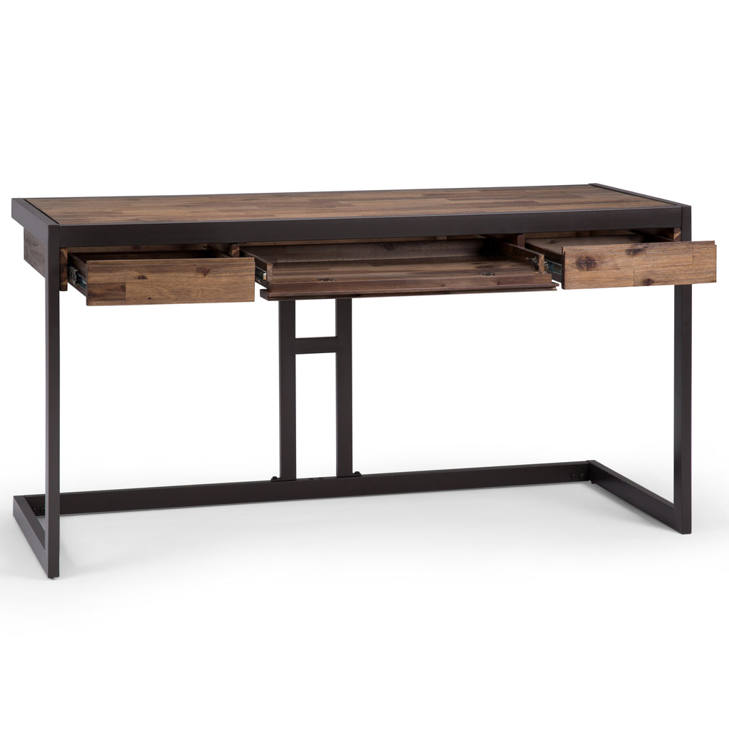 - Features a flip down pull-out keyboard tray and two (2) drawers with metal drawer glides