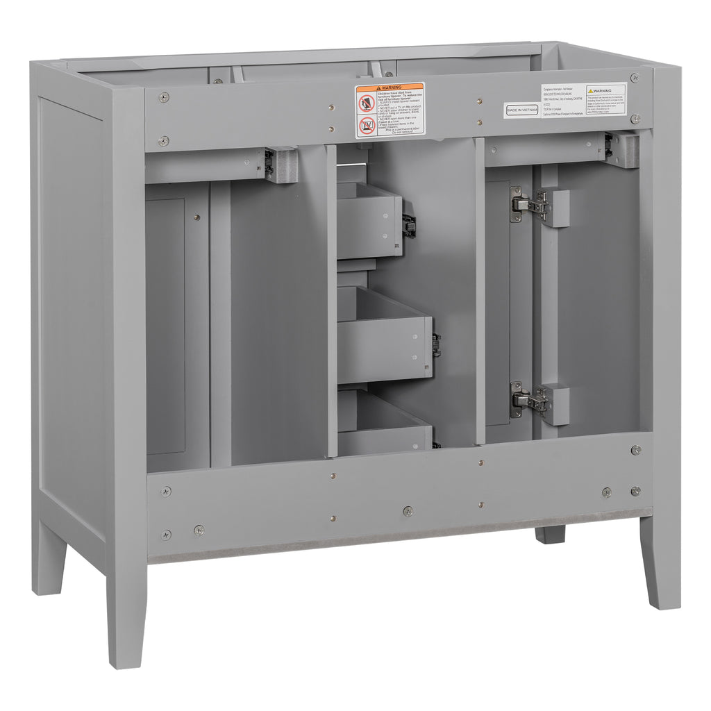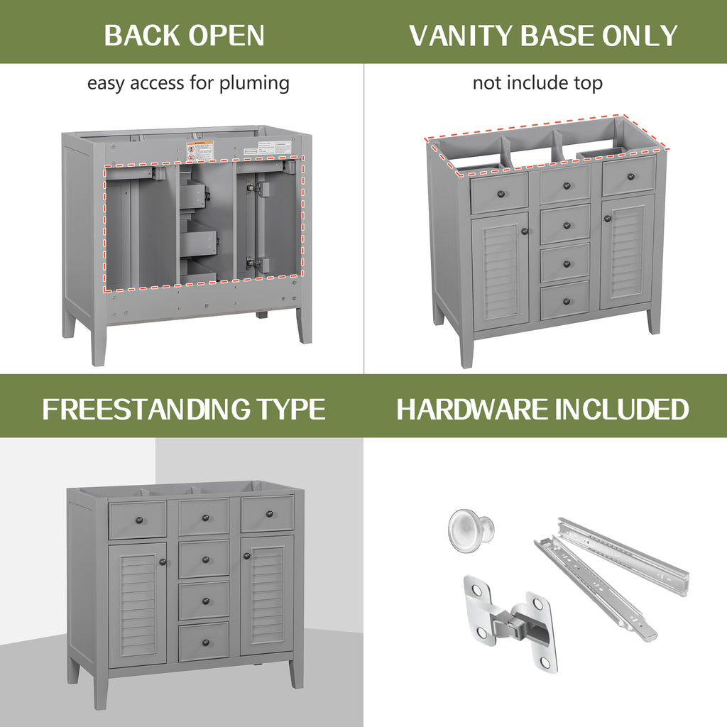 - Assembly Required: This bathroom vanity needs assembly. All the hardware(screws, metal door hinges and handles, drawer slides, anti-toppling device etc.) and instruction manual are provided. You can install it according to the instruction easily. Please be free to contact us if you have any parts missing.