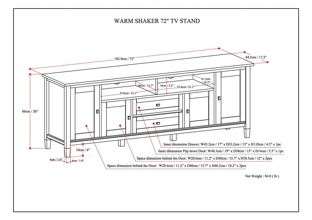 - Dimensions: 17.5' d x 72' w x 26' h