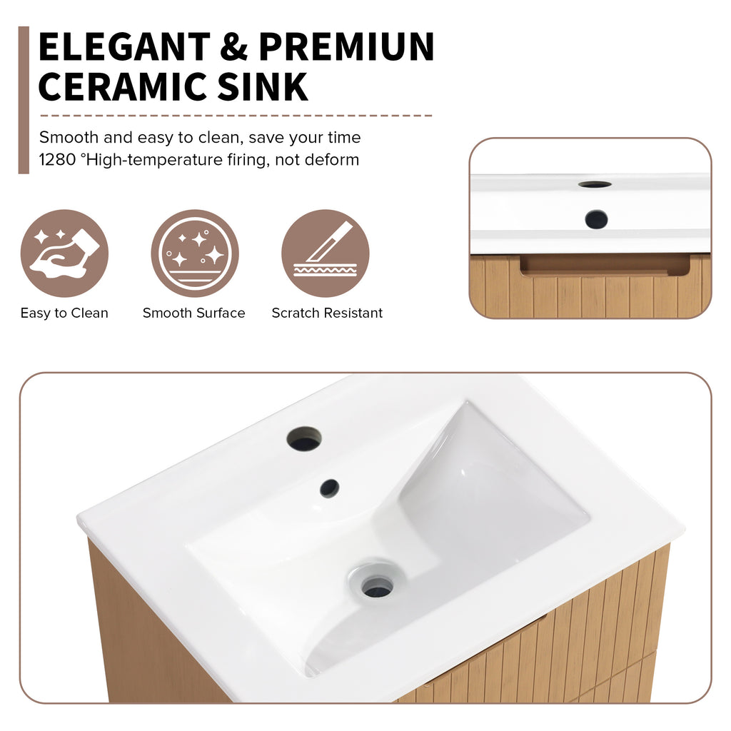 - Floating Bathroom Vanity: Wall mounted vanity with sink will not take up floor space of bathroom, and facilitates easy cleaning. The bottom is convenient for placing dirty clothes baskets and daily cleaning. The overall dimensions 24'L x 18.25' W x19.25'H. (Faucet and pop-up device not included.)