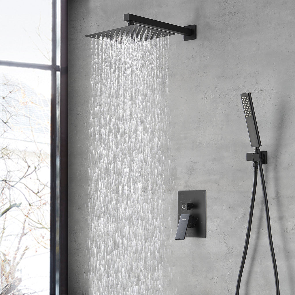 - ?Easy To Install: Tenfe black shower fixtures are designed for easy installation with standard-sized NPT 1/2” tapered threads, compatible with most pipes types like: copper, PVC and PEX tubes etc. Shower Faucet Combo Included: 10 inch square rainfall shower head and arm, bathtub faucet, handheld shower head and holder, shower hose and accessories.