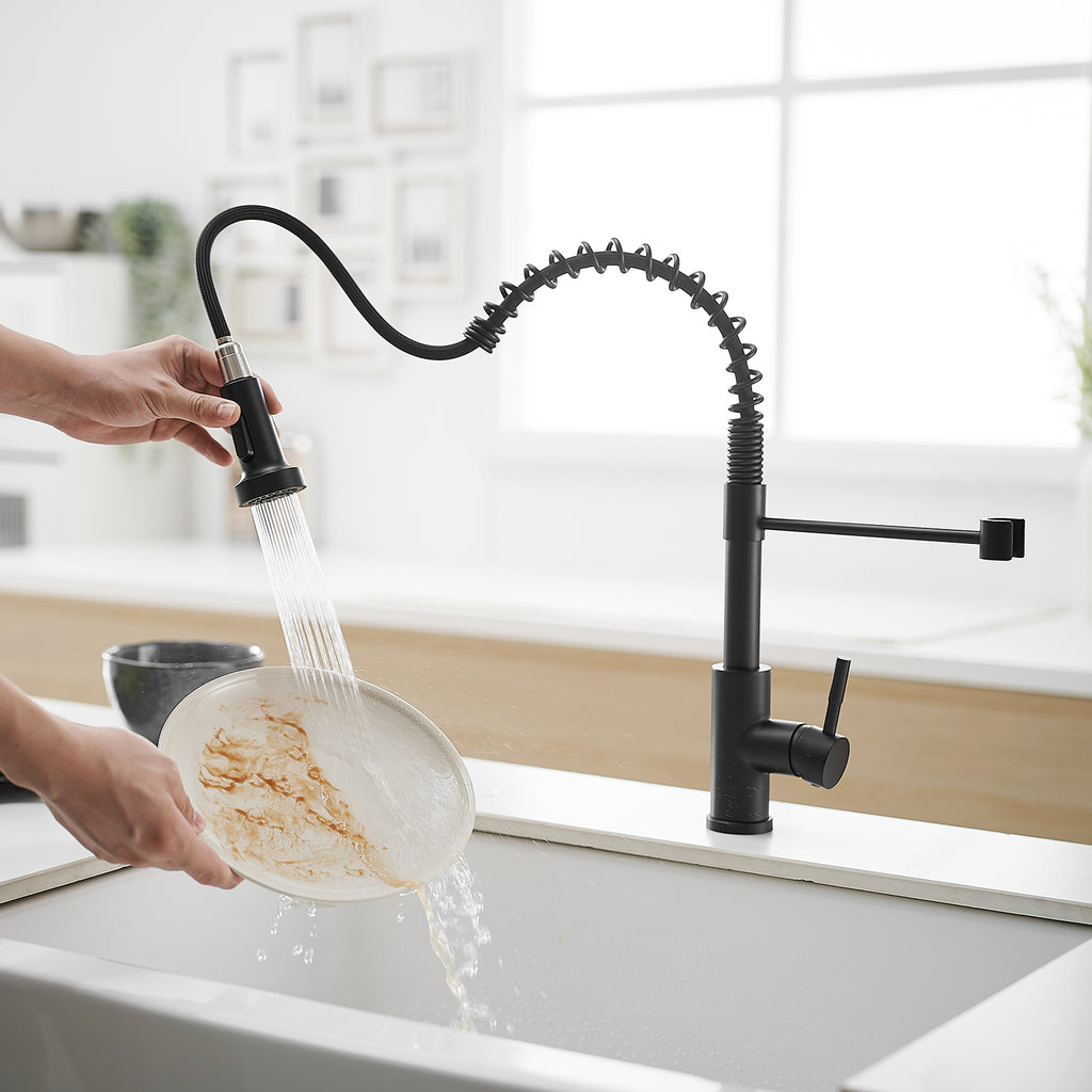 【 360° Swivel Kitchen Faucet 】360° swivel Blackened  kitchen faucet with pull out spray supply full range of washing for your sink. This black faucet is suitable for bar sink, kitchen prep Sink,bathroom sink, kitchen sink and so on.