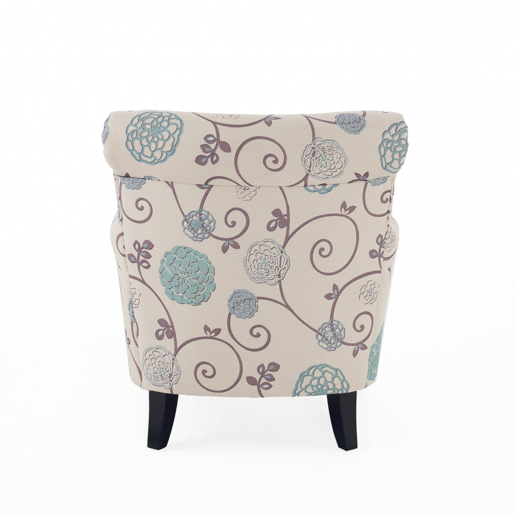 - Material: Fabric, Floral upholstery.