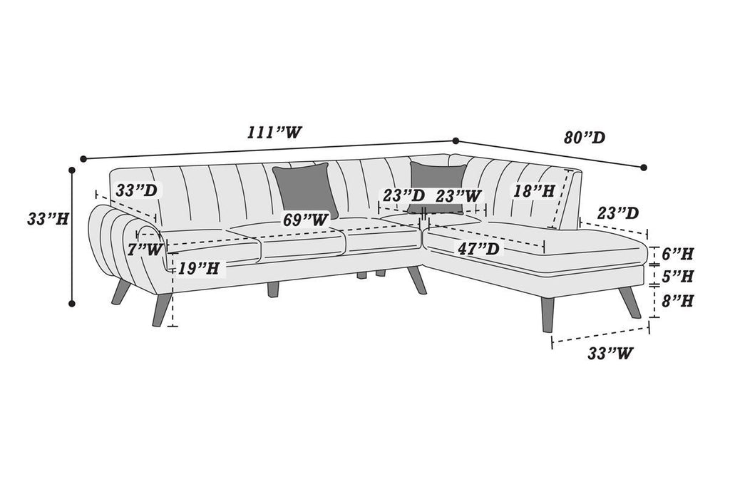- PRODUCT DIMENSION:OVERALL 111'W x 80'D x 33'H <> COMPONENTS RAF Chaise 80' x 35' x 33'H, LAF Sofa 76' x 35' x 33'H
