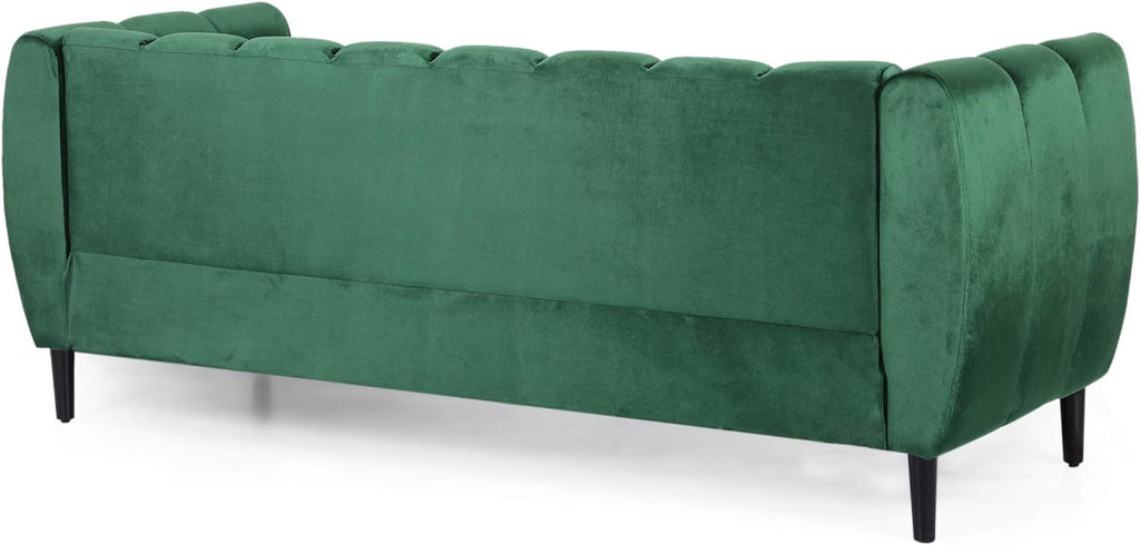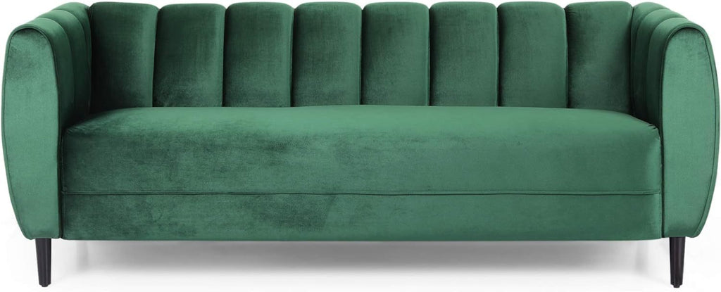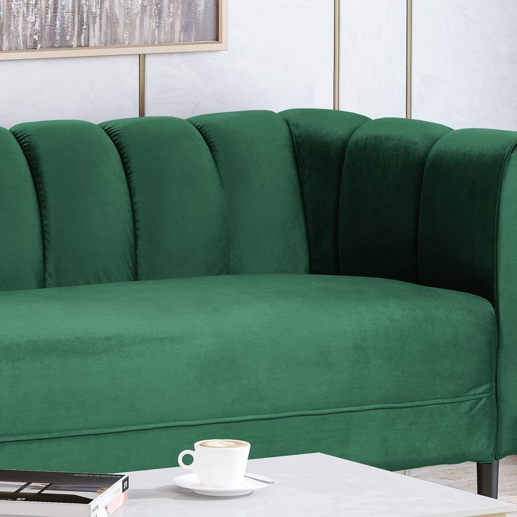 - MODERN GLAM: Our sofa showcases smooth velvet textures and jewel-like colors that pair seamlessly with clean, straight lines for a luxurious modern glam look. Complemented with a curvaceous shell design and minimalistic structure, this sofa brings a sleek touch to any decor.