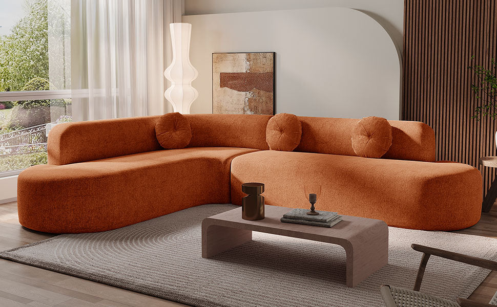 - Elegant Curved Aesthetics:Featuring a naturally curved silhouette, this sofa combines elegance with modern style. The meticulous craftsmanship is complemented by three plush round cushions, adding a touch of sophistication to your home decor.