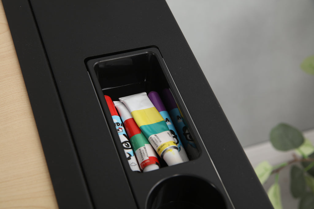 - Plenty of storage space:It has two large-size non-woven fabric drawers. There are metal storage strips on the side to store pens, paints, etc.