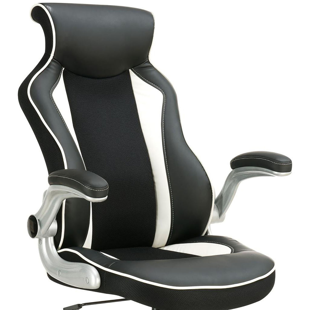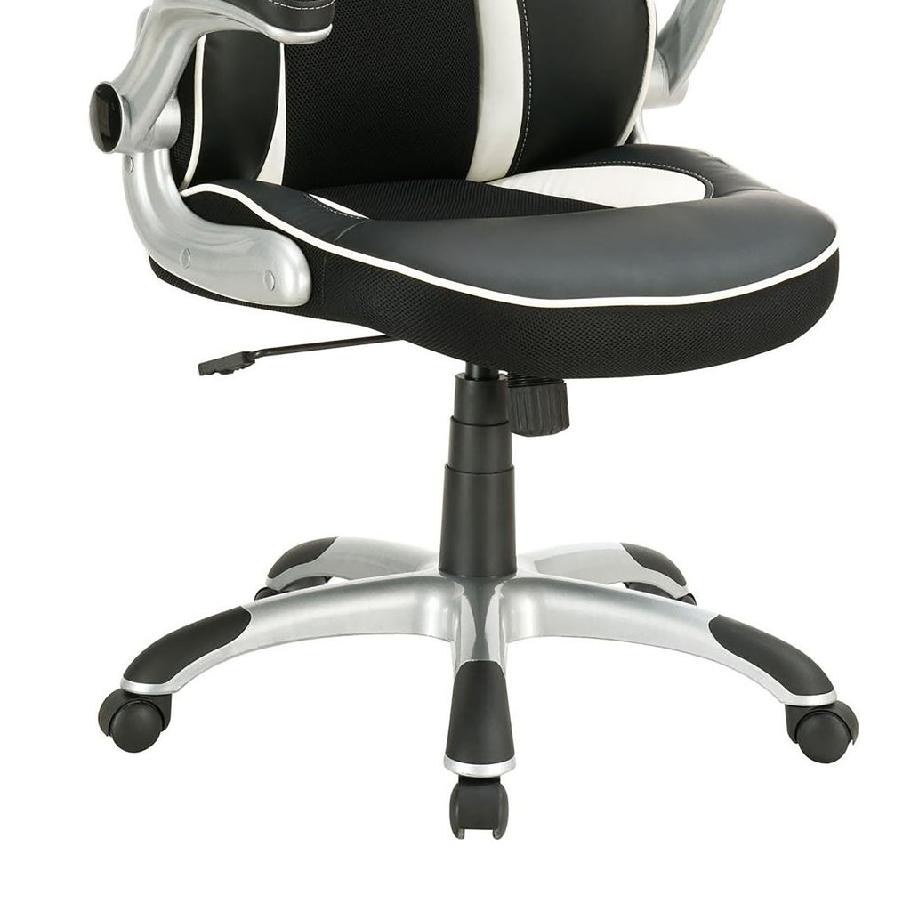 Announce your cool work aesthetic with this strikingly designed contemporary office chair. From the silver arms and base to the contrasting black and white faux leather upholstery to the chair's eye-catching, modern silhouette, you're sure to have the most stylish chair around.