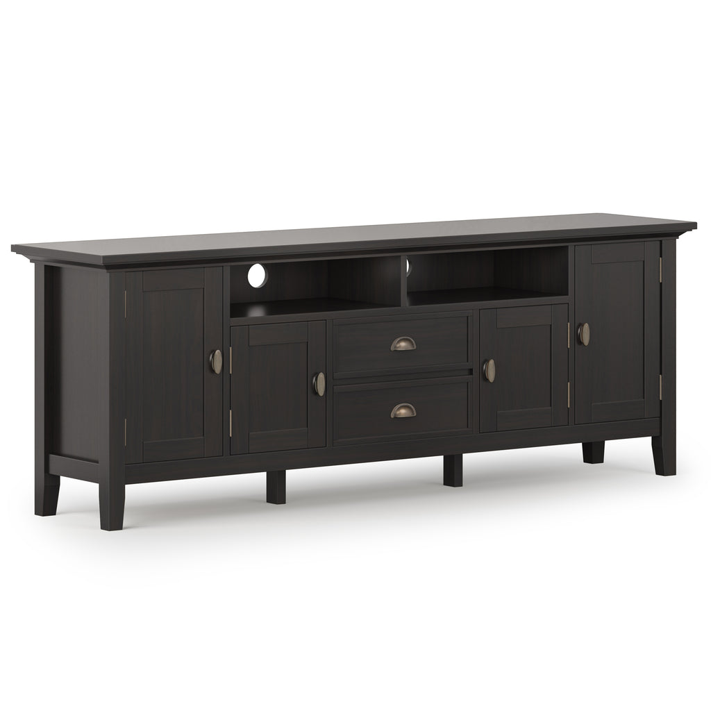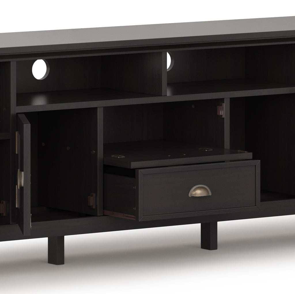 - Extra wide TV Stand is perfect for TVs up to 80 inches includes cord management cut-outs for easy installation of TV and media components