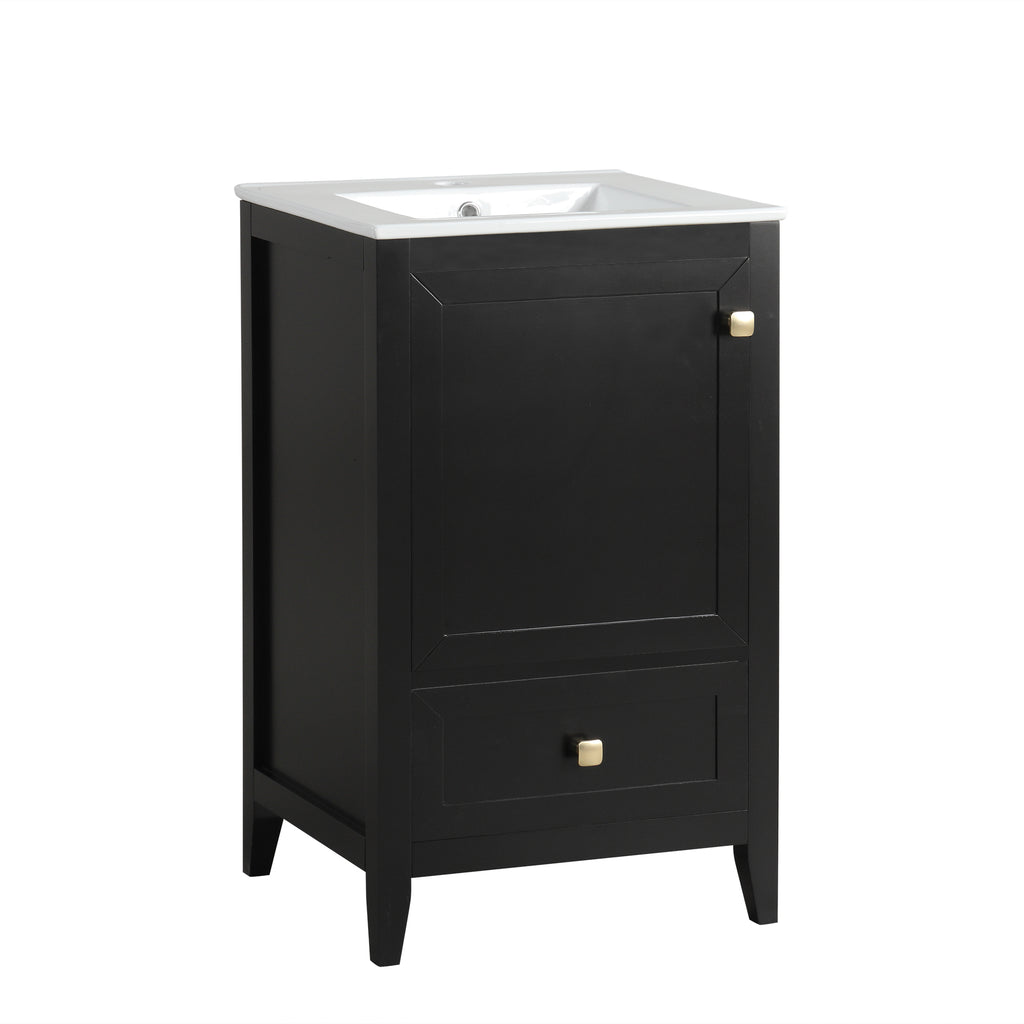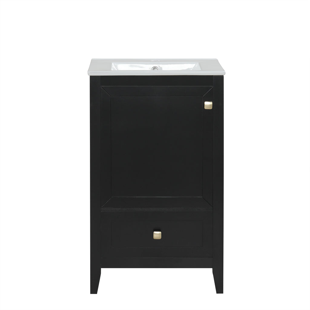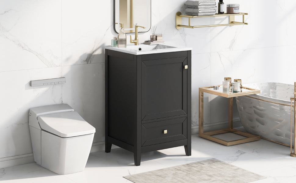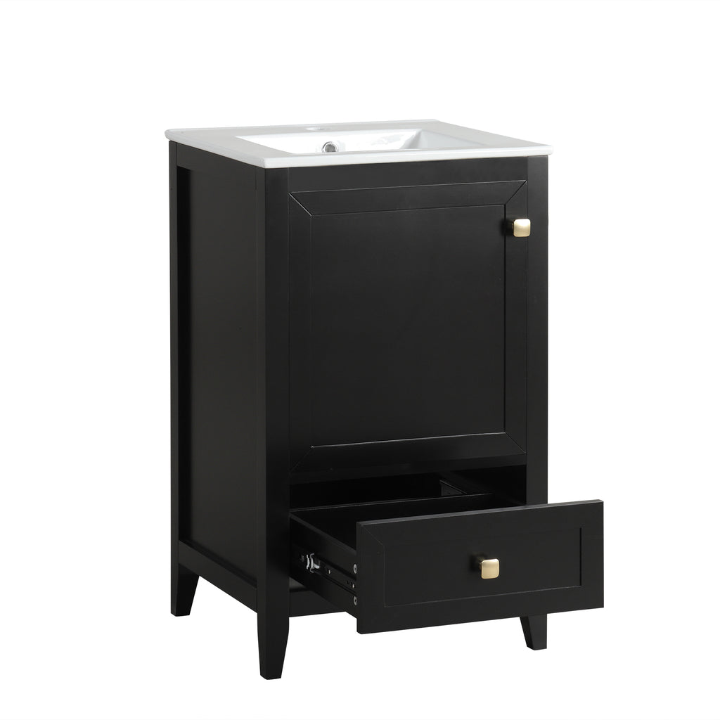 - Vanity with Cabinet & Storage Rack & Drawer - This bathroom vanity has ample storage space: one cabinet with door, two-tier storage rack on the door, and a big drawer. You can put soaps, towels, shampoos, tissue paper and other bathroom essentials in it so to keep them away from dust.