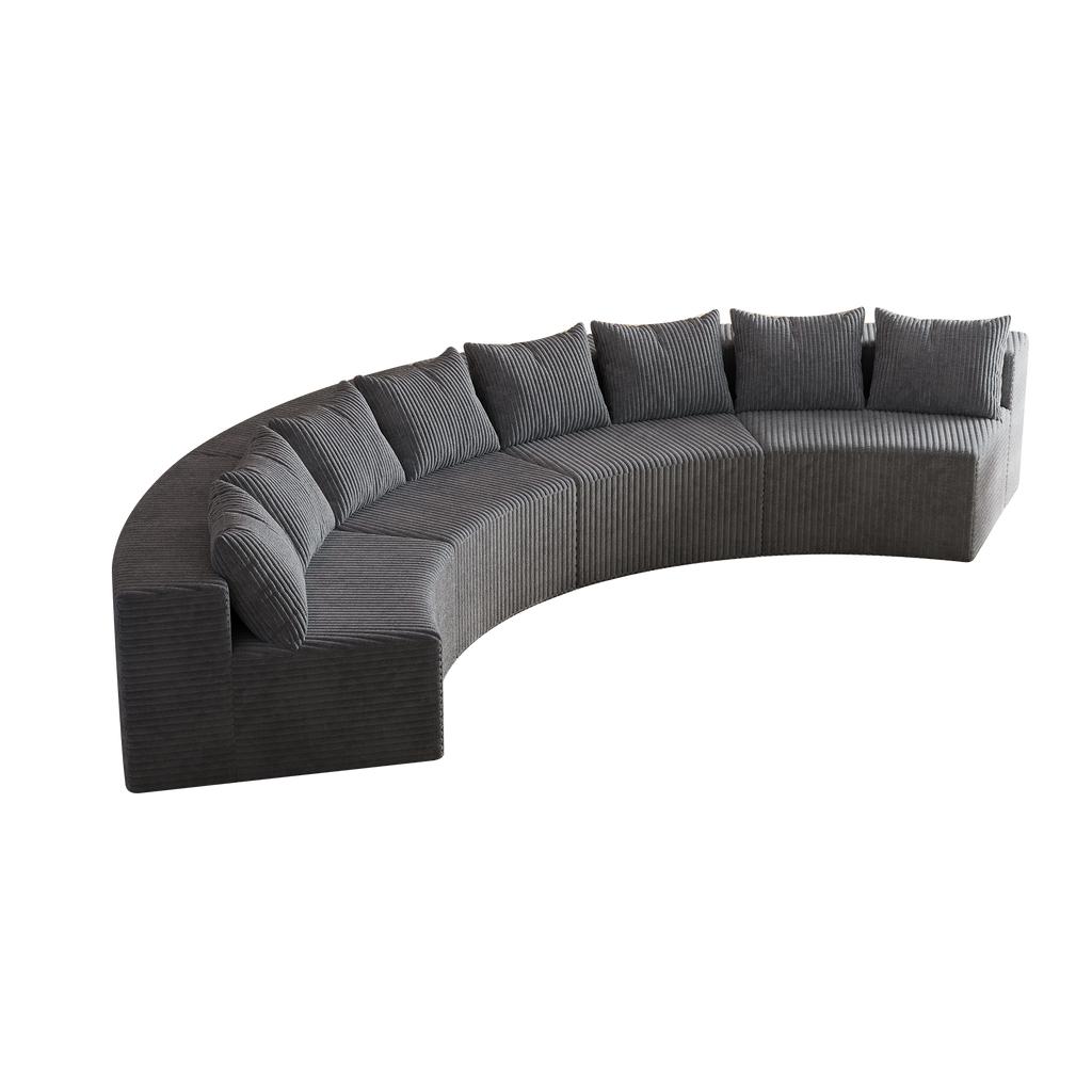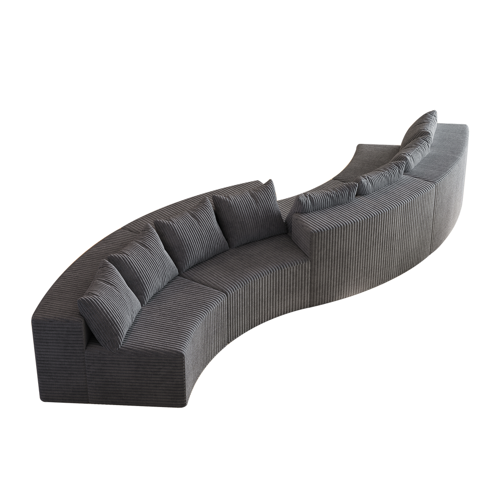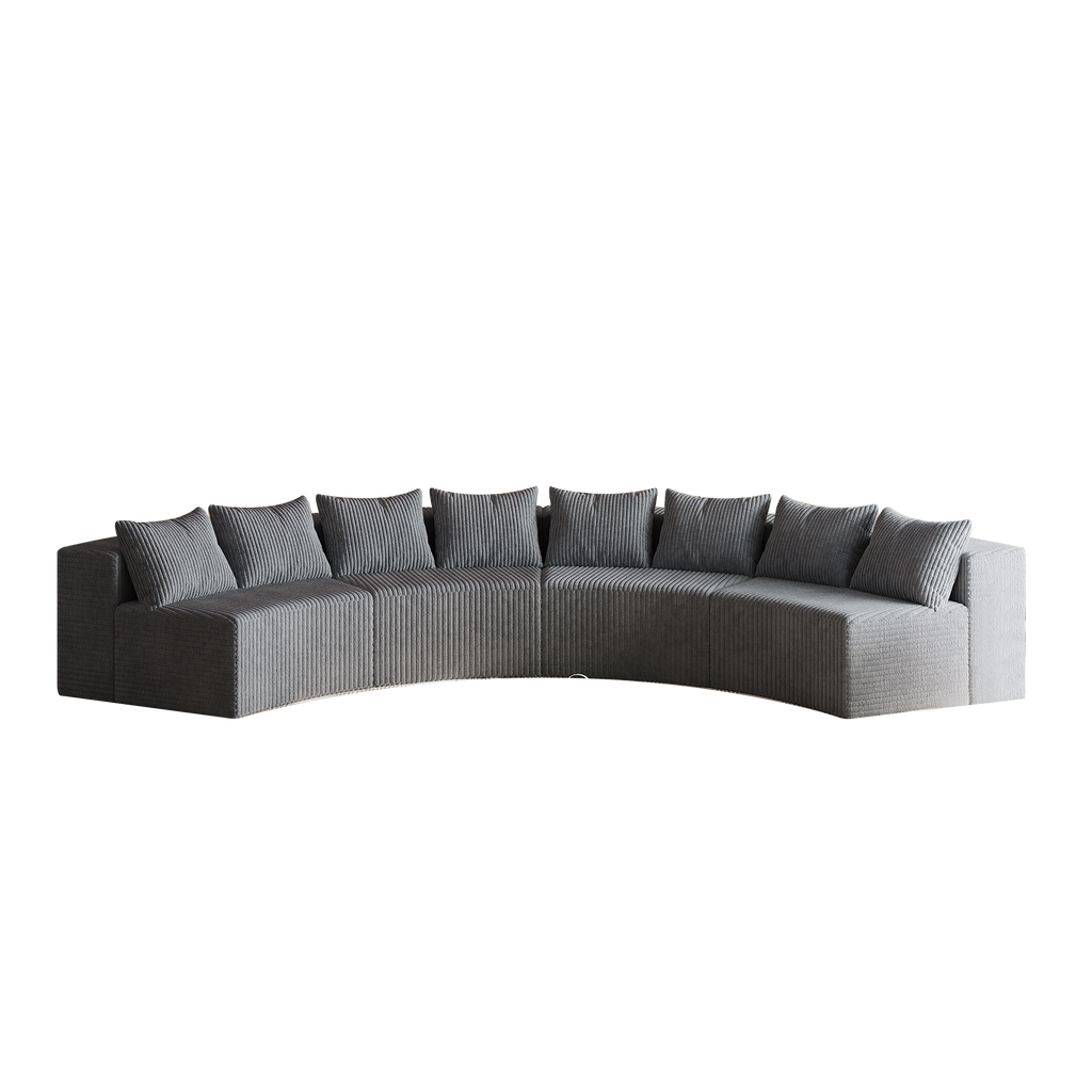 - 【UNIQUE DESIGN】 The curved sofa's unique shape instantly fills your room with a cozy ambiance, featuring beautifully detailed the curves of the armrests, Corduroy fabric, for an elegant look. This comfy couch also comes with 4 pillows for comfortable back support.